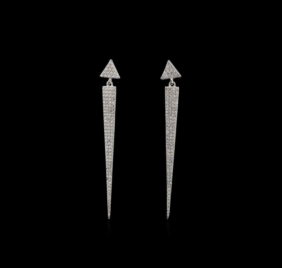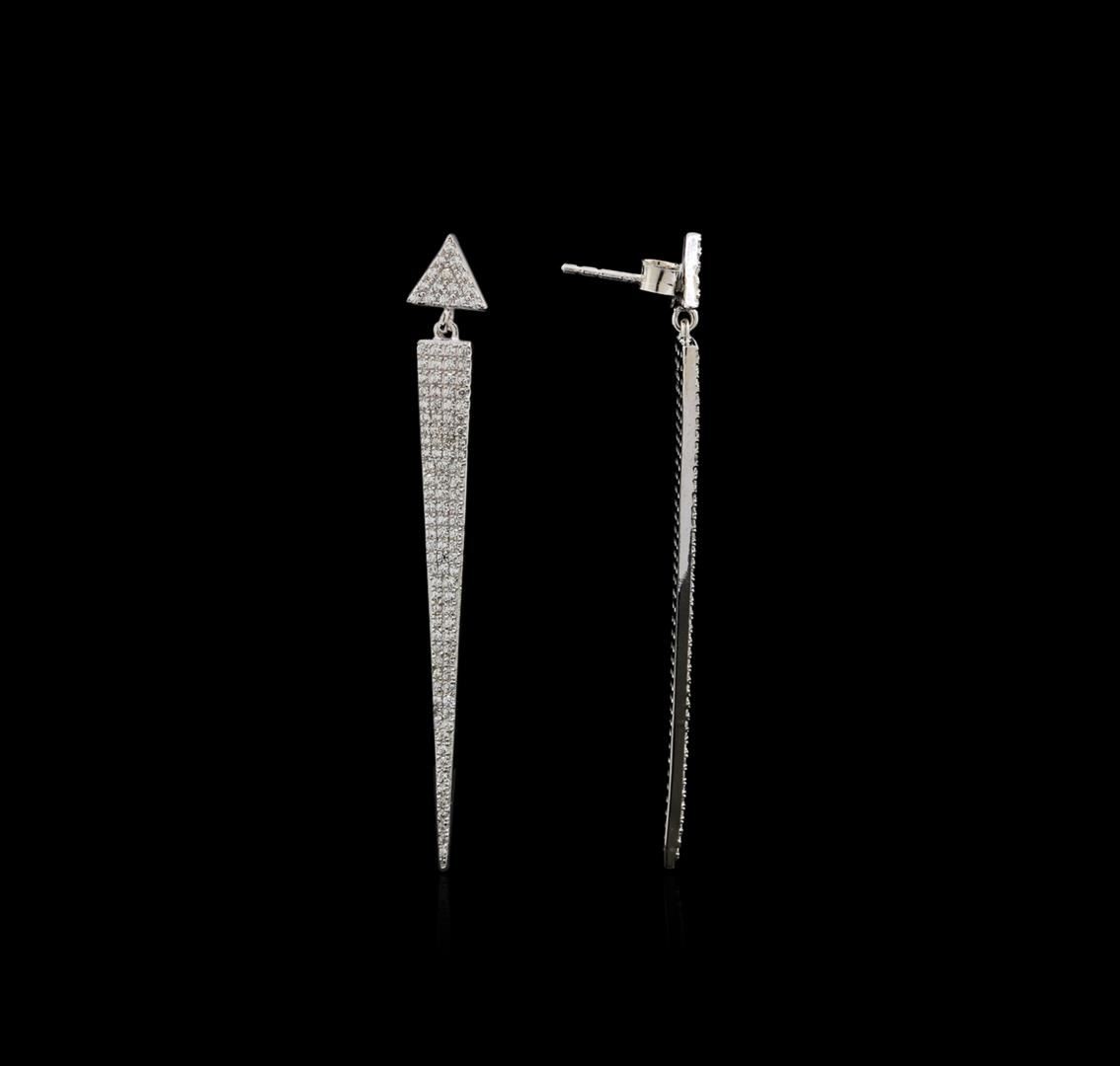 One of a kind high fashion sterling silver Earrings weighing 5.1 grams. Containing: Cubic Zirconia. This sterling silver promises a lasting shine.