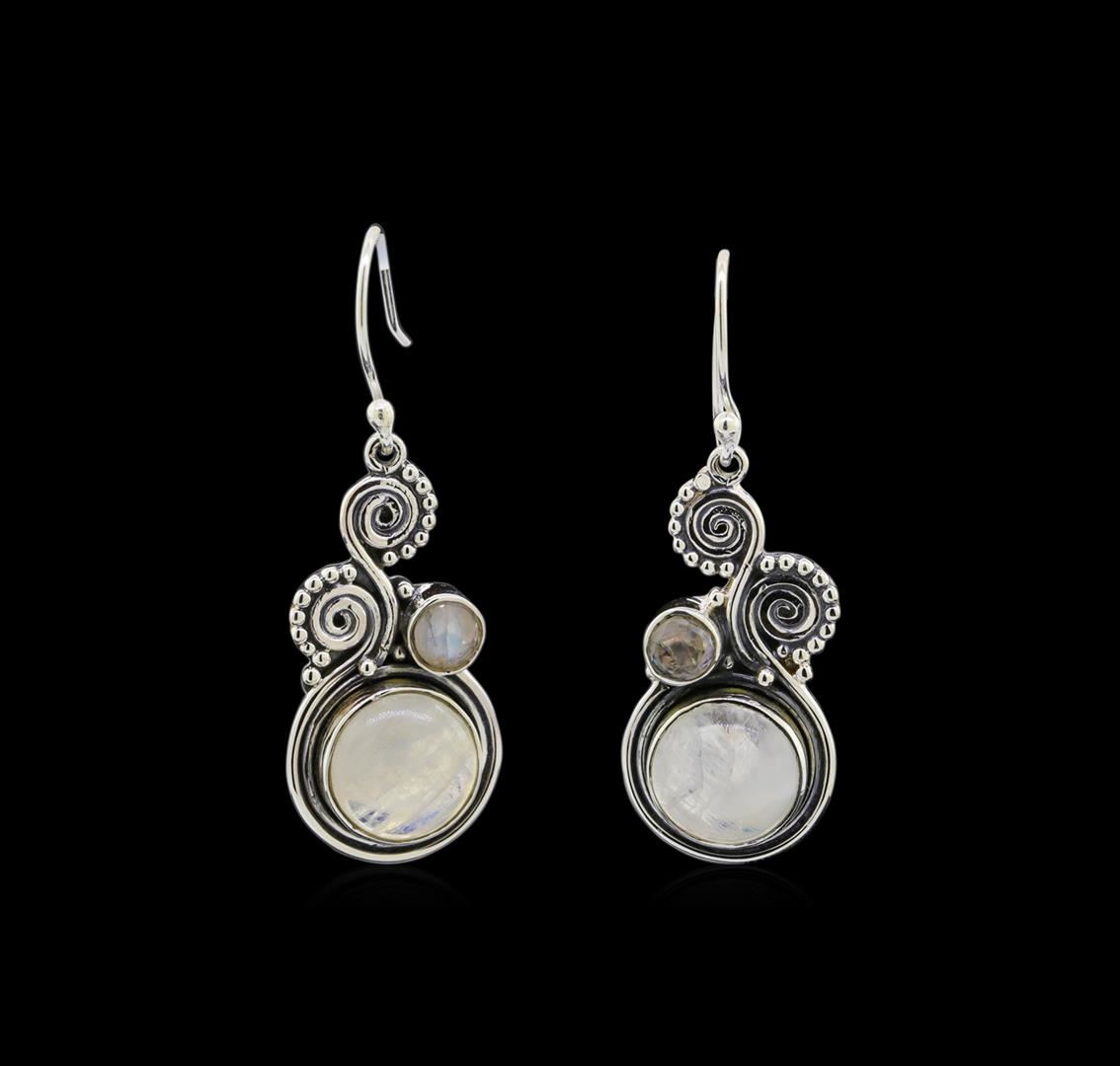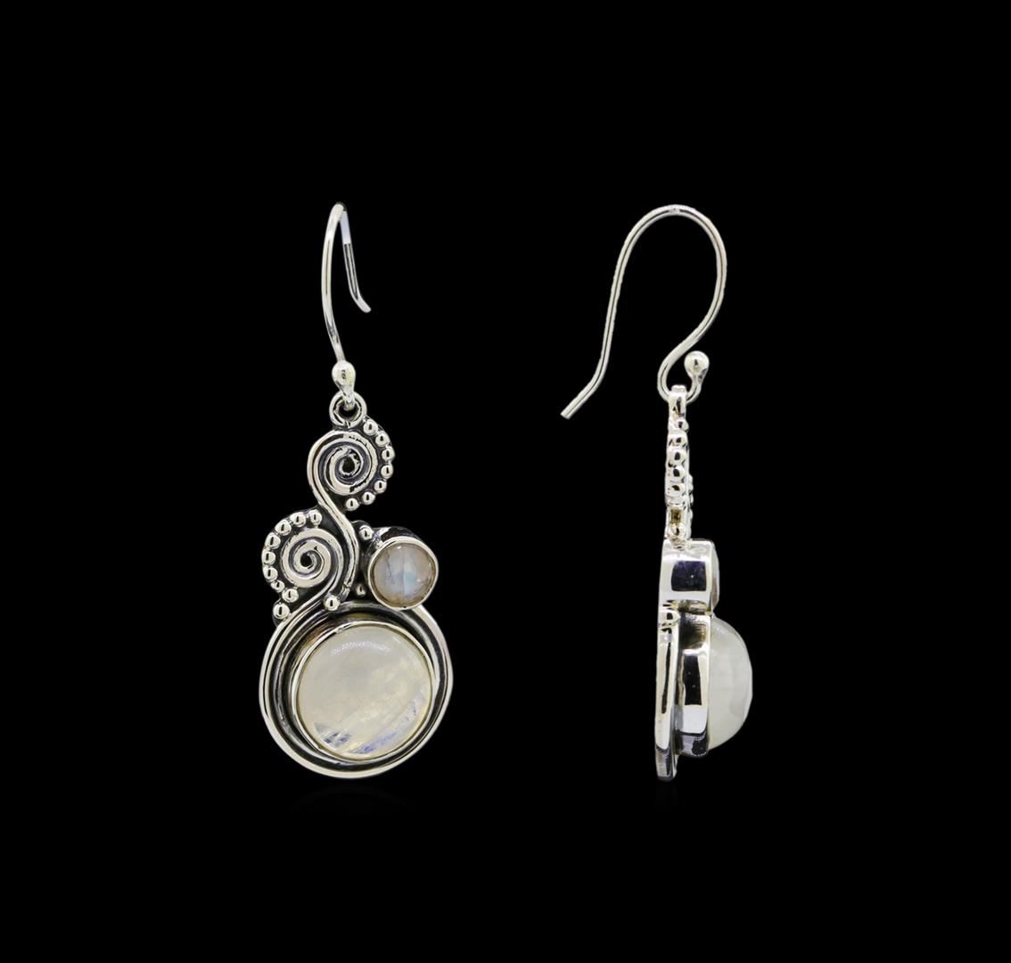 One of a kind high fashion sterling silver Earrings weighing 10.7 grams. Containing: Moonstone. This sterling silver promises a lasting shine.