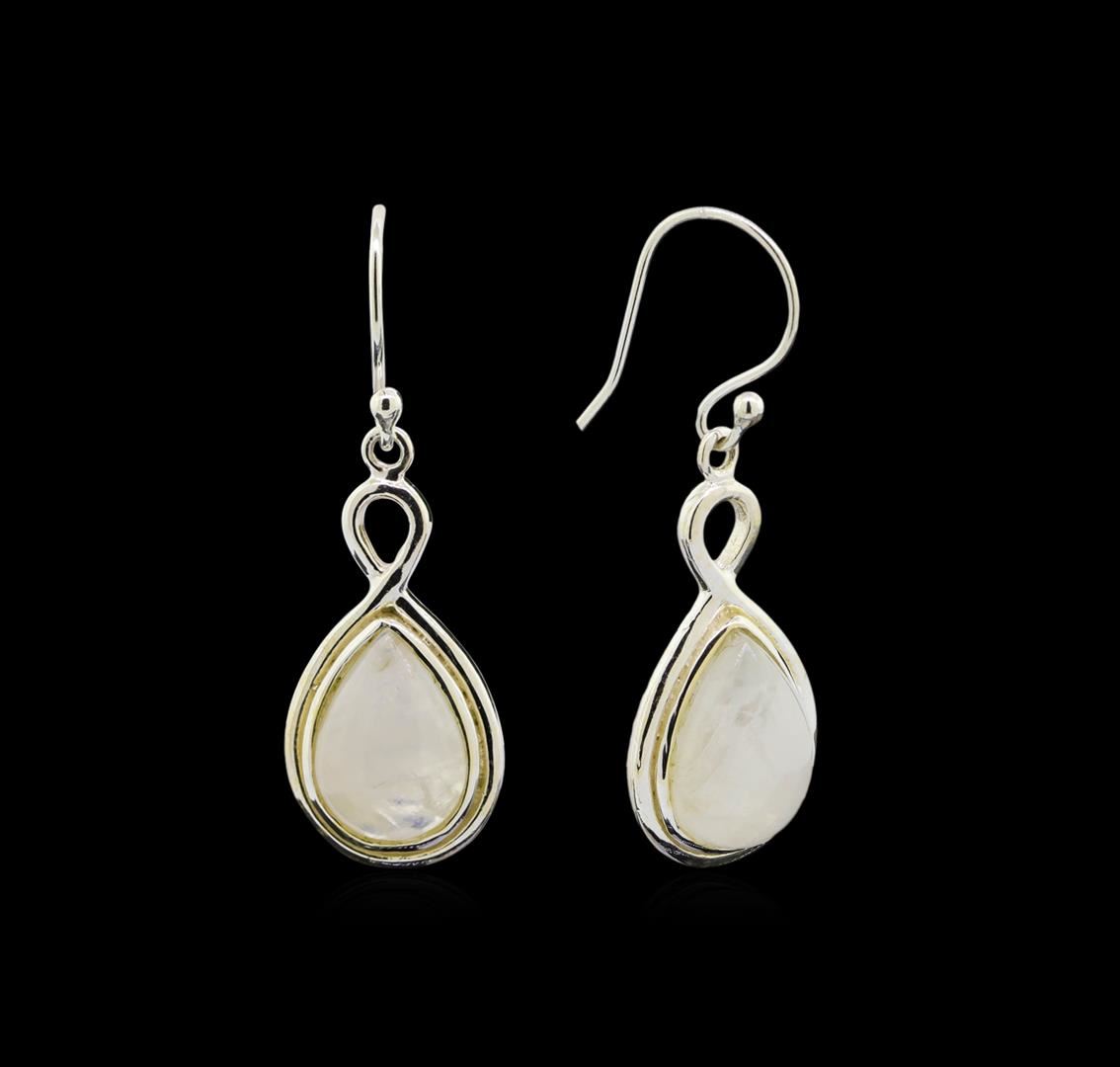 One of a kind high fashion sterling silver Earrings weighing 7.5 grams. Containing: Moonstone. This sterling silver promises a lasting shine.