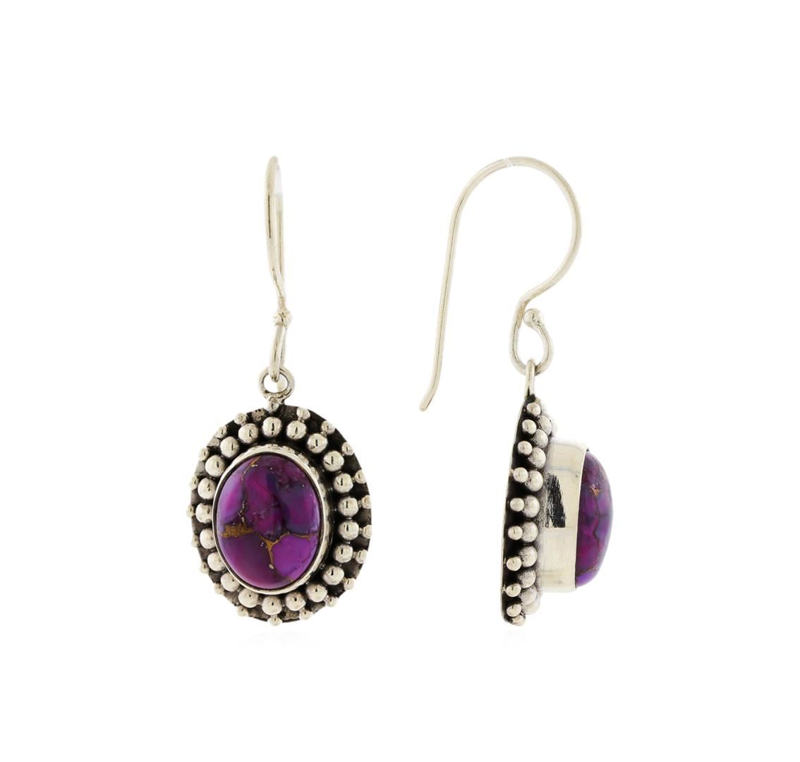 One of a kind high fashion sterling silver Earrings weighing 5.6 grams. Containing: Dyed Purple Turquoise. This sterling silver promises a lasting shine.