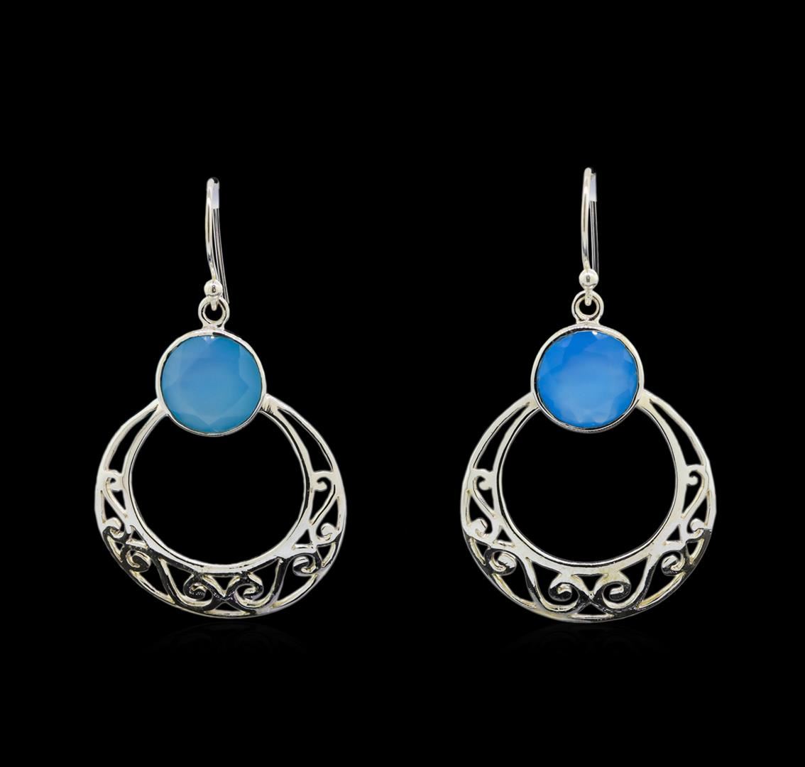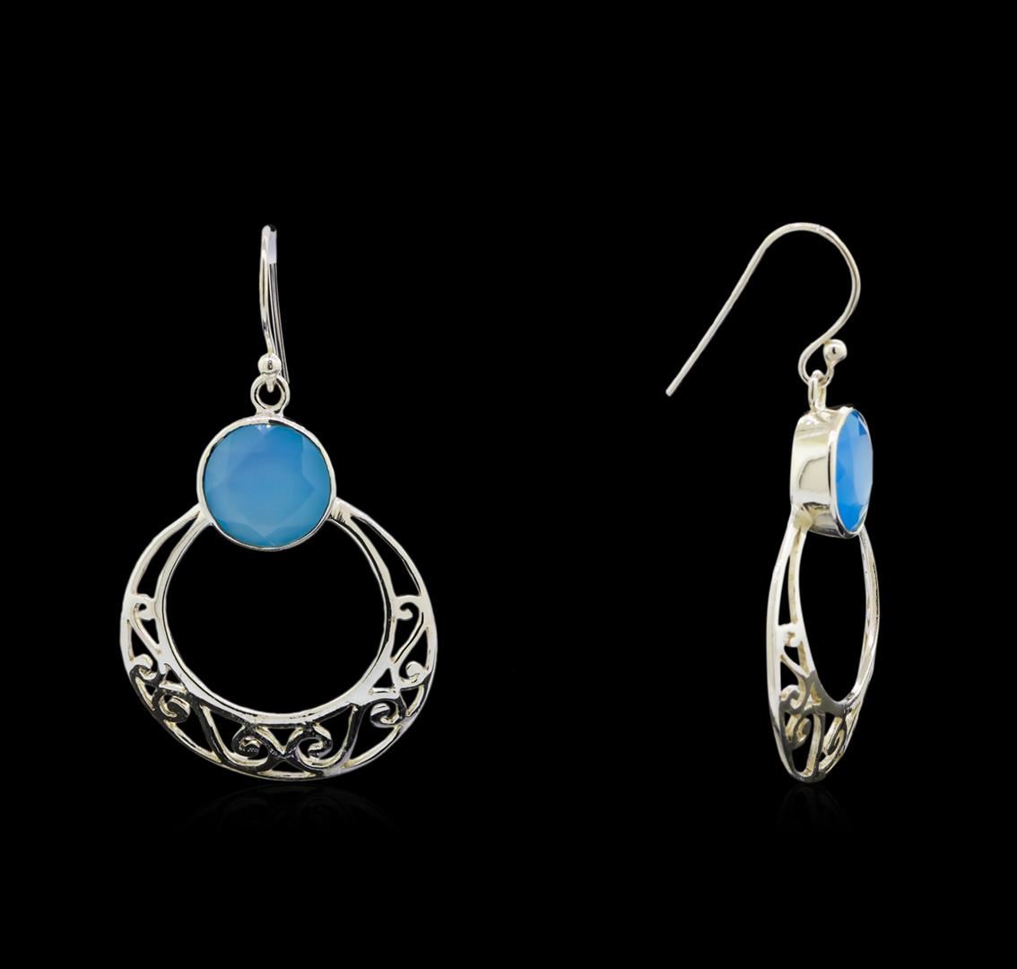 One of a kind high fashion sterling silver Earrings weighing 6.4 grams. Containing: Blue Agate. This sterling silver promises a lasting shine.