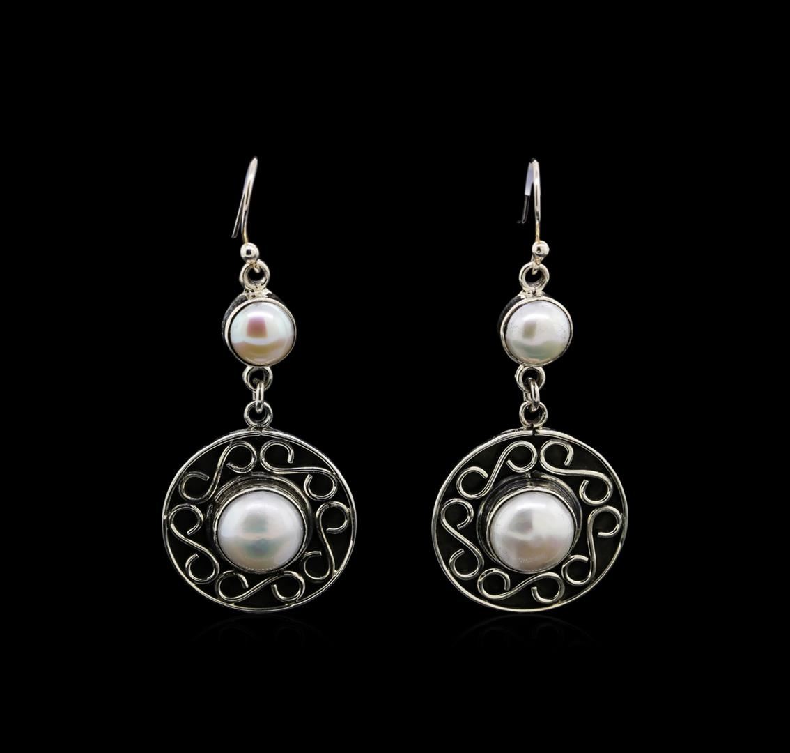 One of a kind high fashion sterling silver Earrings weighing 15.6 grams. Containing: Natural Button Pearls. This sterling silver promises a lasting shine.
