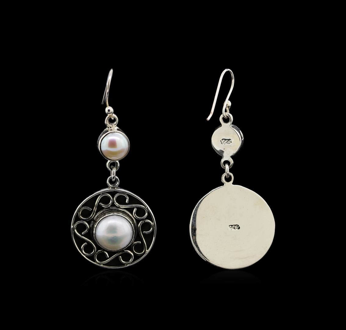 One of a kind high fashion sterling silver Earrings weighing 15.6 grams. Containing: Natural Button Pearls. This sterling silver promises a lasting shine.