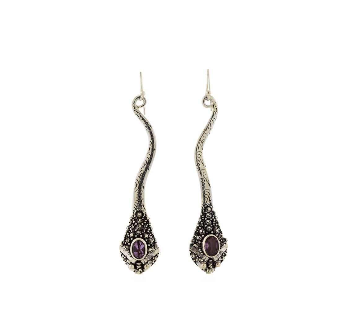 One of a kind high fashion sterling silver Earrings weighing 9.1 grams. Containing: Amethyst. This sterling silver promises a lasting shine.