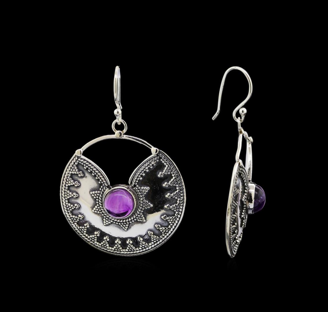 One of a kind high fashion sterling silver Earrings weighing 12.7 grams. Containing: Amethyst. This sterling silver promises a lasting shine.