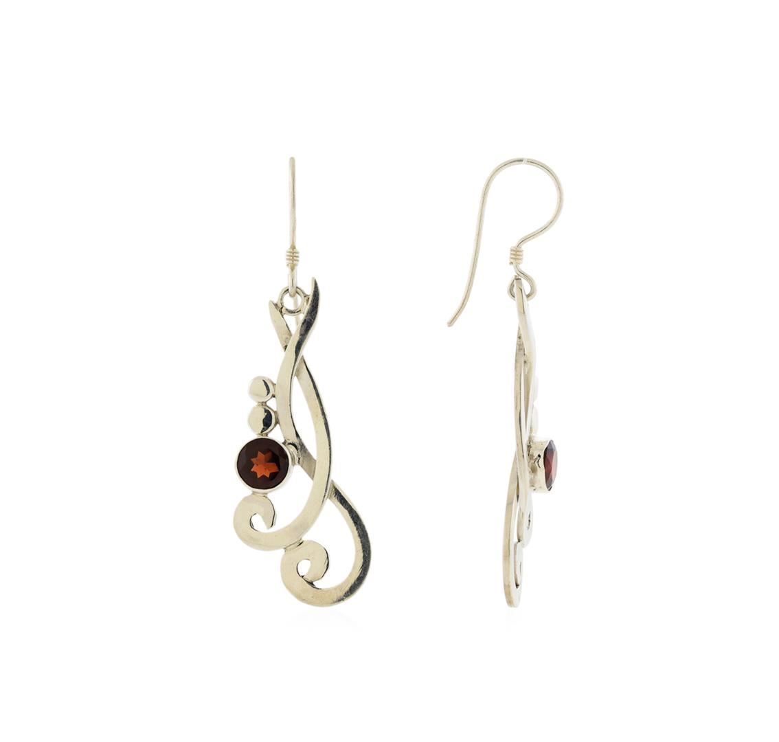 One of a kind high fashion sterling silver Earrings weighing 6.8 grams. Containing: Garnet. This sterling silver promises a lasting shine.
