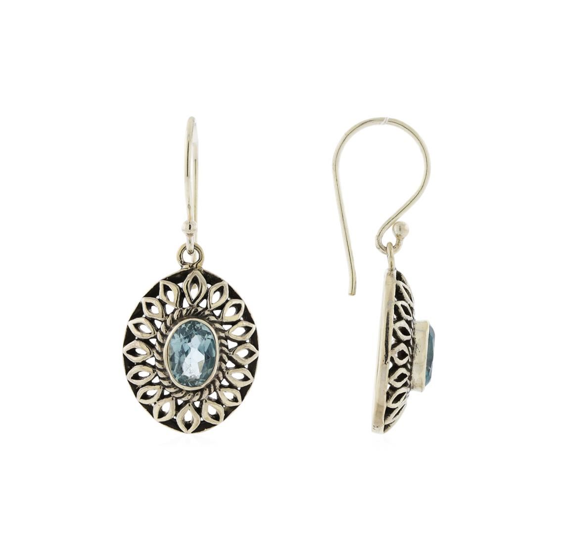 One of a kind high fashion sterling silver Earrings weighing 5.4 grams. Containing: Blue Topaz. This sterling silver promises a lasting shine.