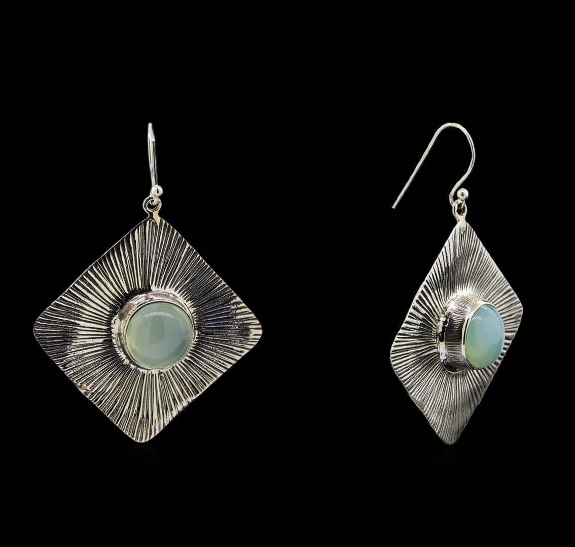 One of a kind high fashion sterling silver Earrings weighing 20.2 grams. Containing: Bluish Green Agate. This sterling silver promises a lasting shine.