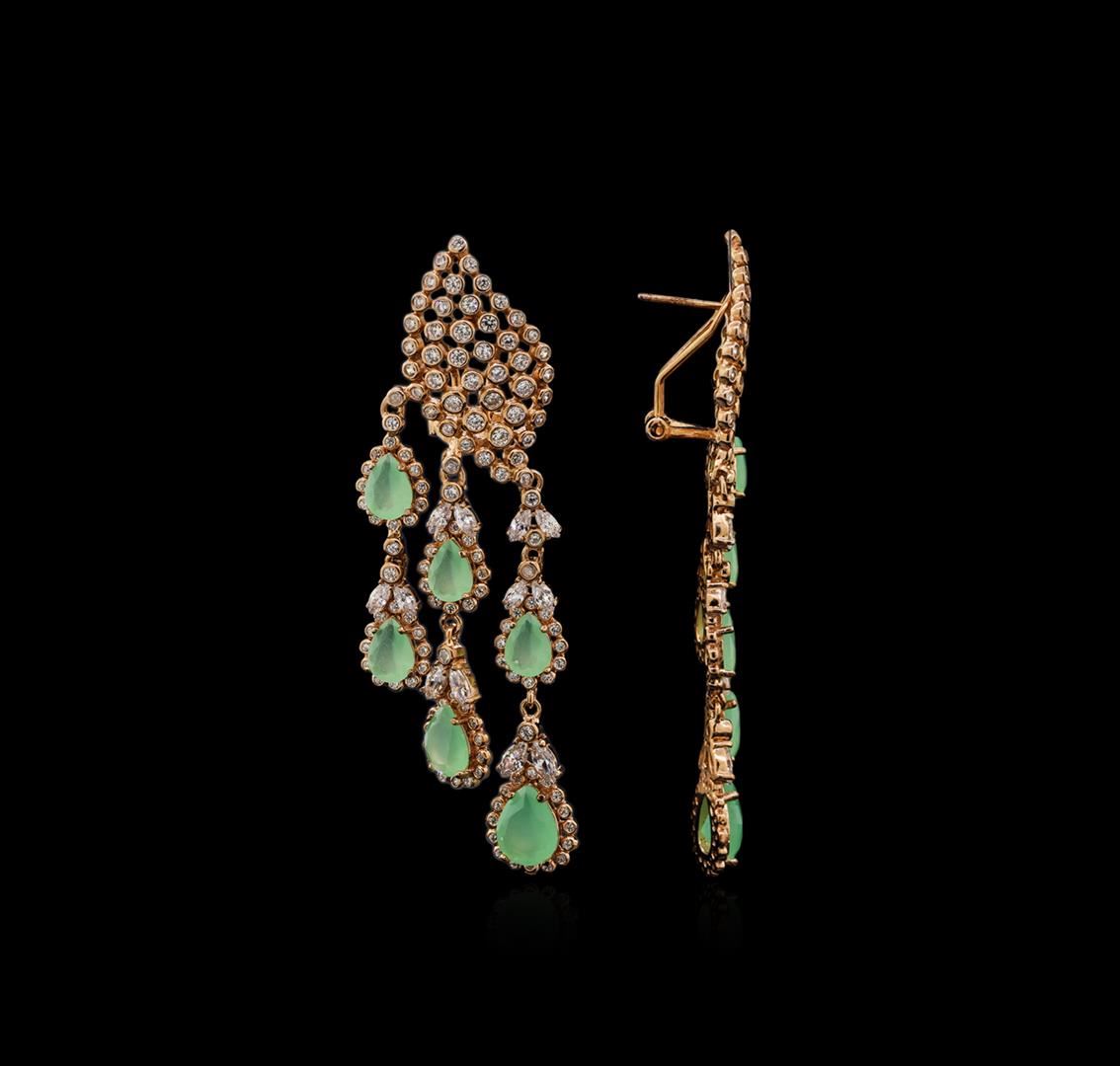One of a kind high fashion sterling silver Earrings weighing 19.9 grams. Containing: Green Crystal, Cubic Zirconia. This sterling silver promises a lasting shine.