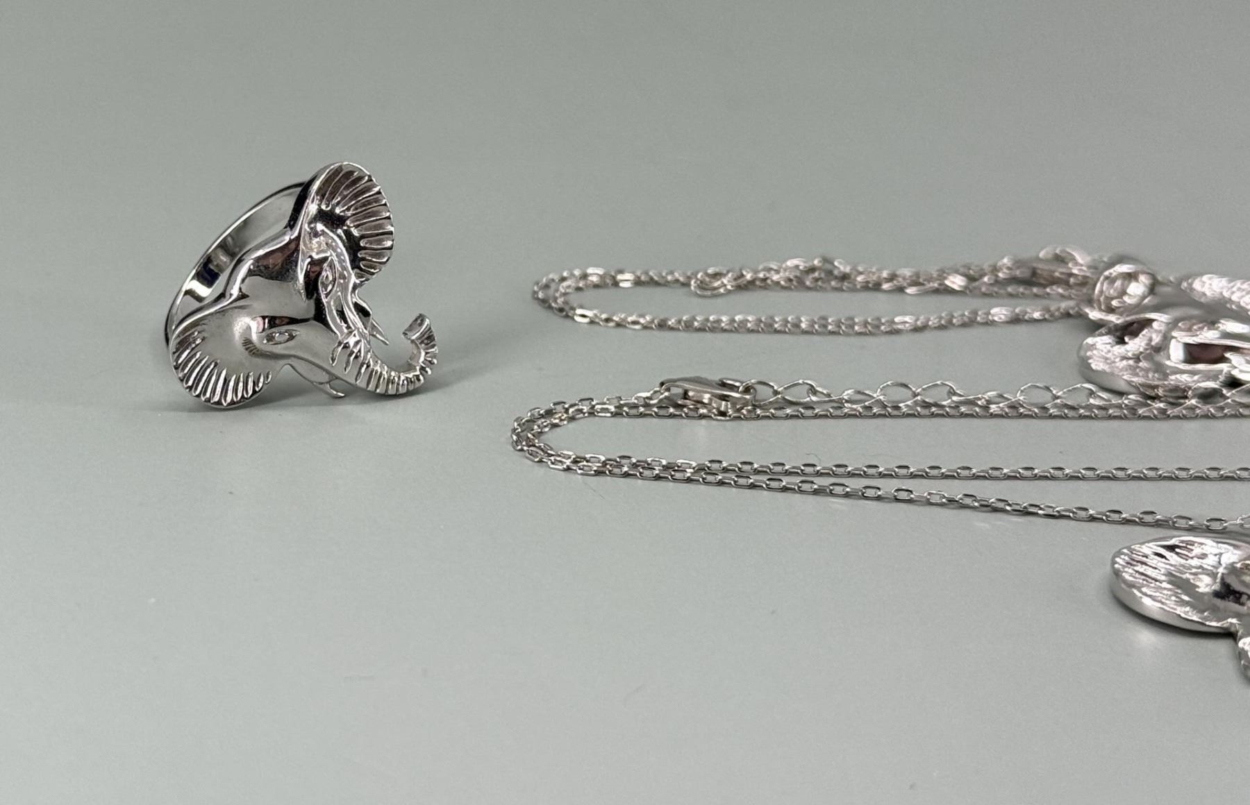 Longest necklace measures 10 5/8" long closed. Ring is size 7. 18.82 grams.