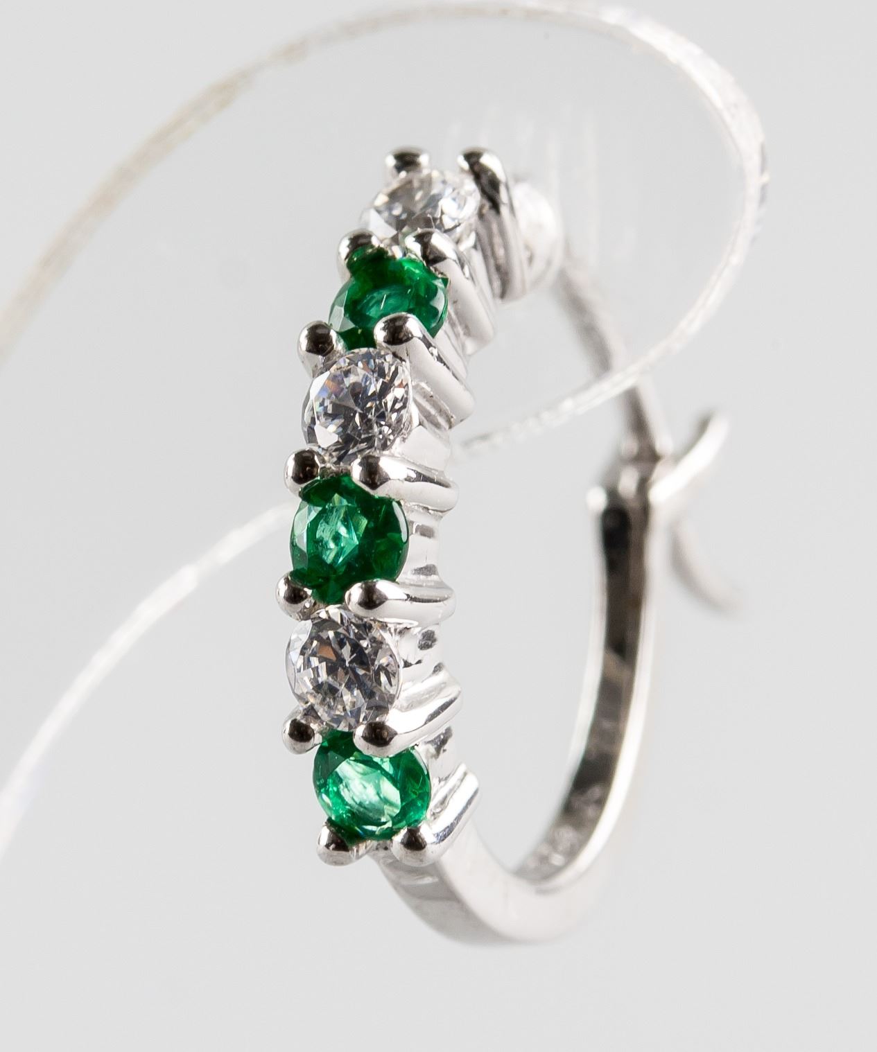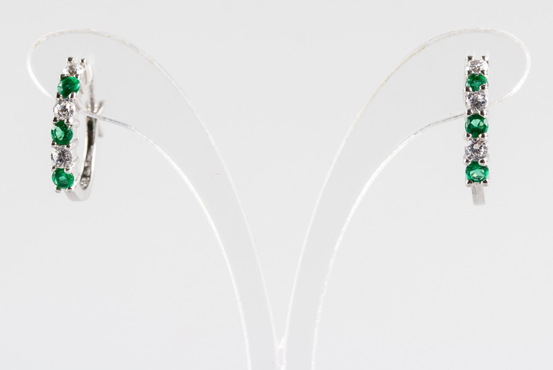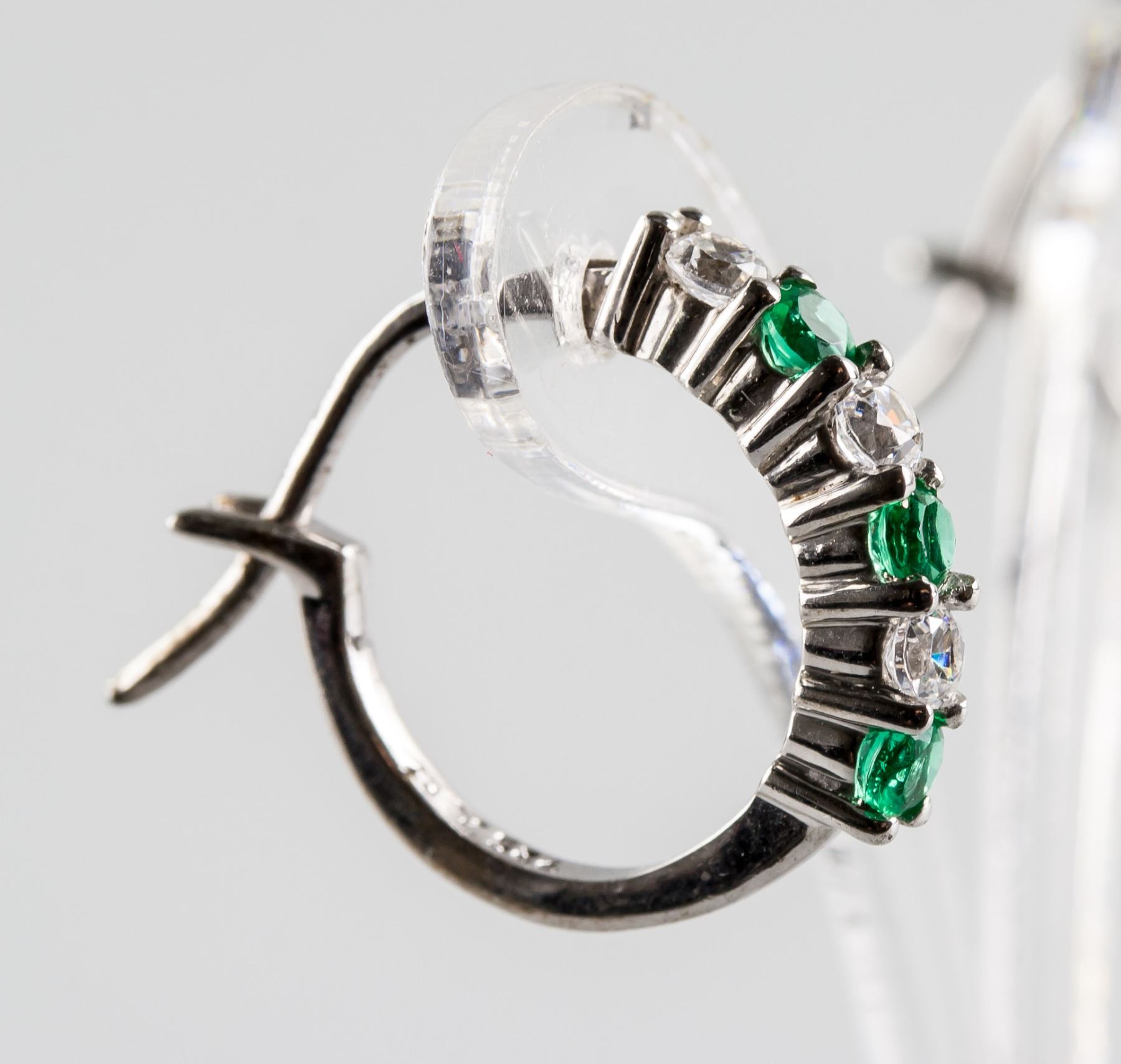 Stamped 925 silver hoop earrings. Set with emeralds. Retail value $100.