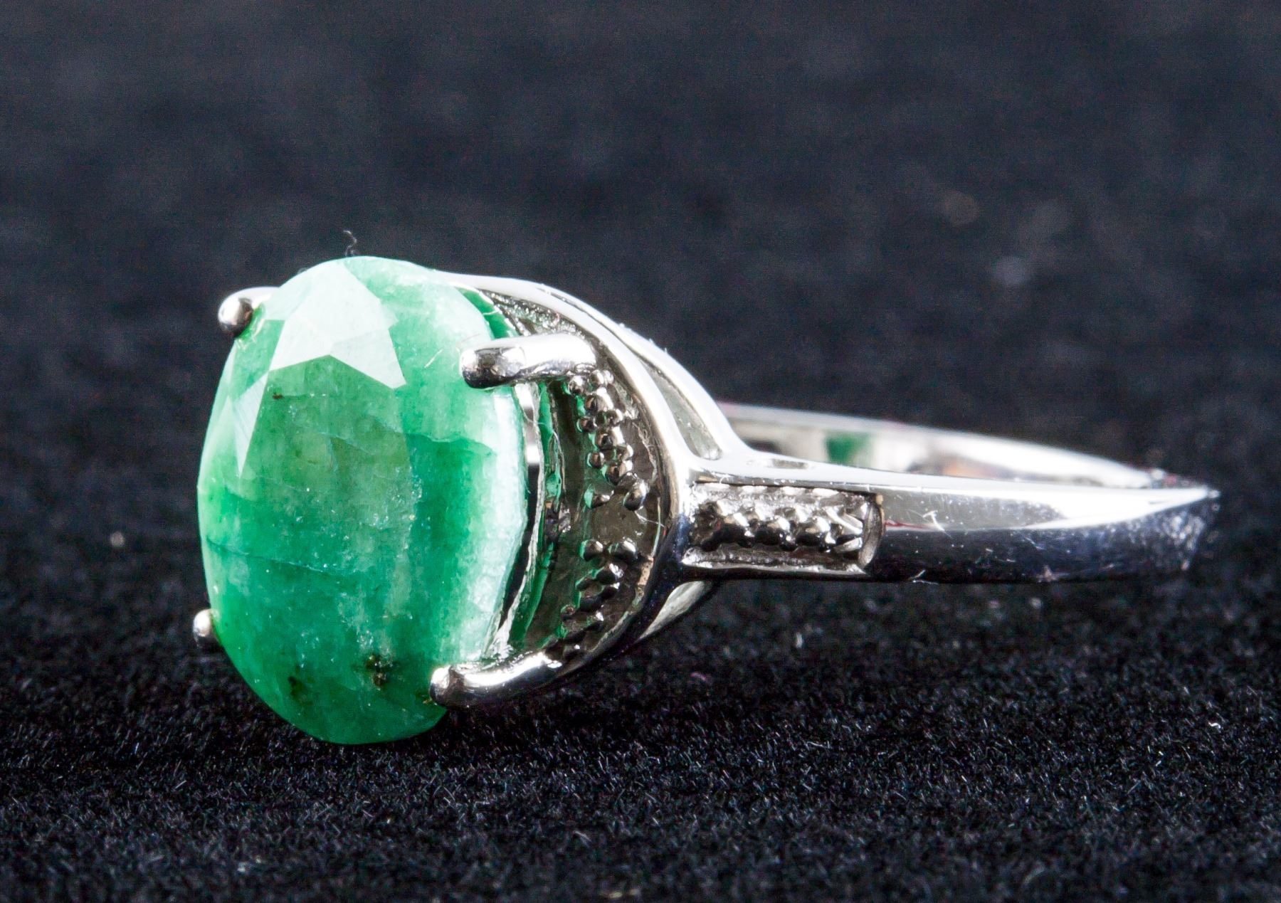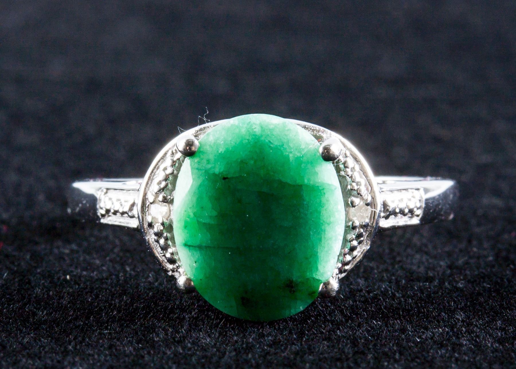Stamped 925 silver. Set with emerald. Retail value $350.