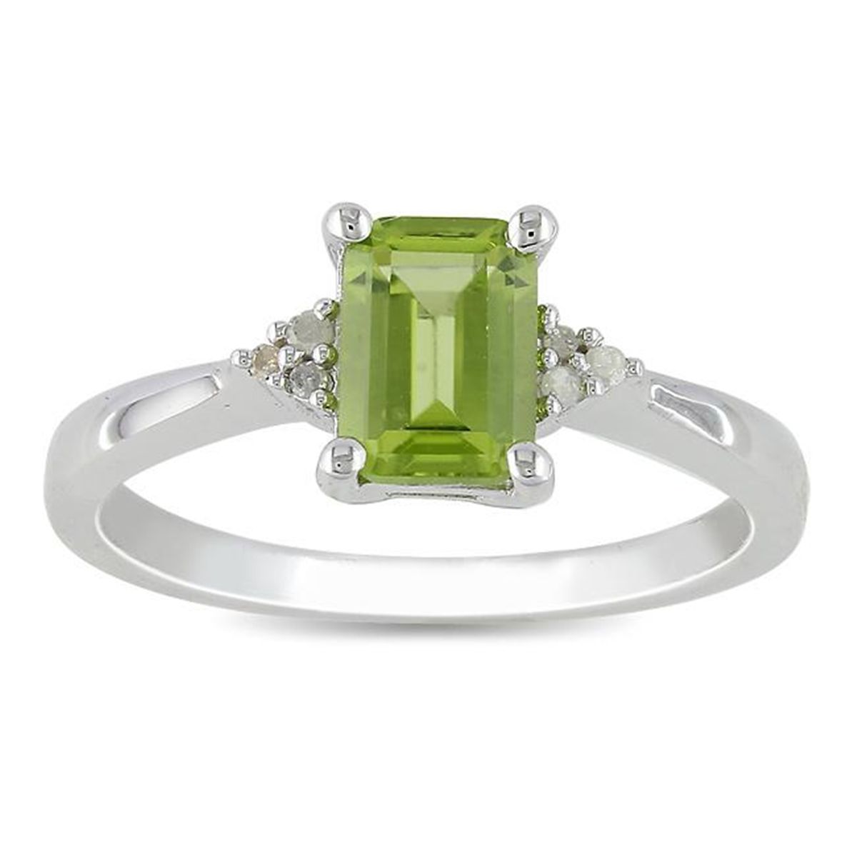 Sterling Silver Emerald-cut Peridot and Diamond-accented Ring Item#: 13347235