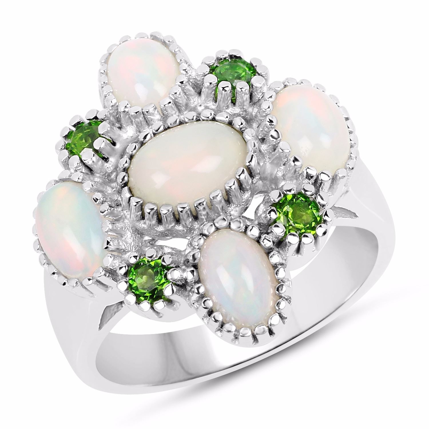 Sterling Silver Ethiopian Opal and Chrome-Diopside Ring
