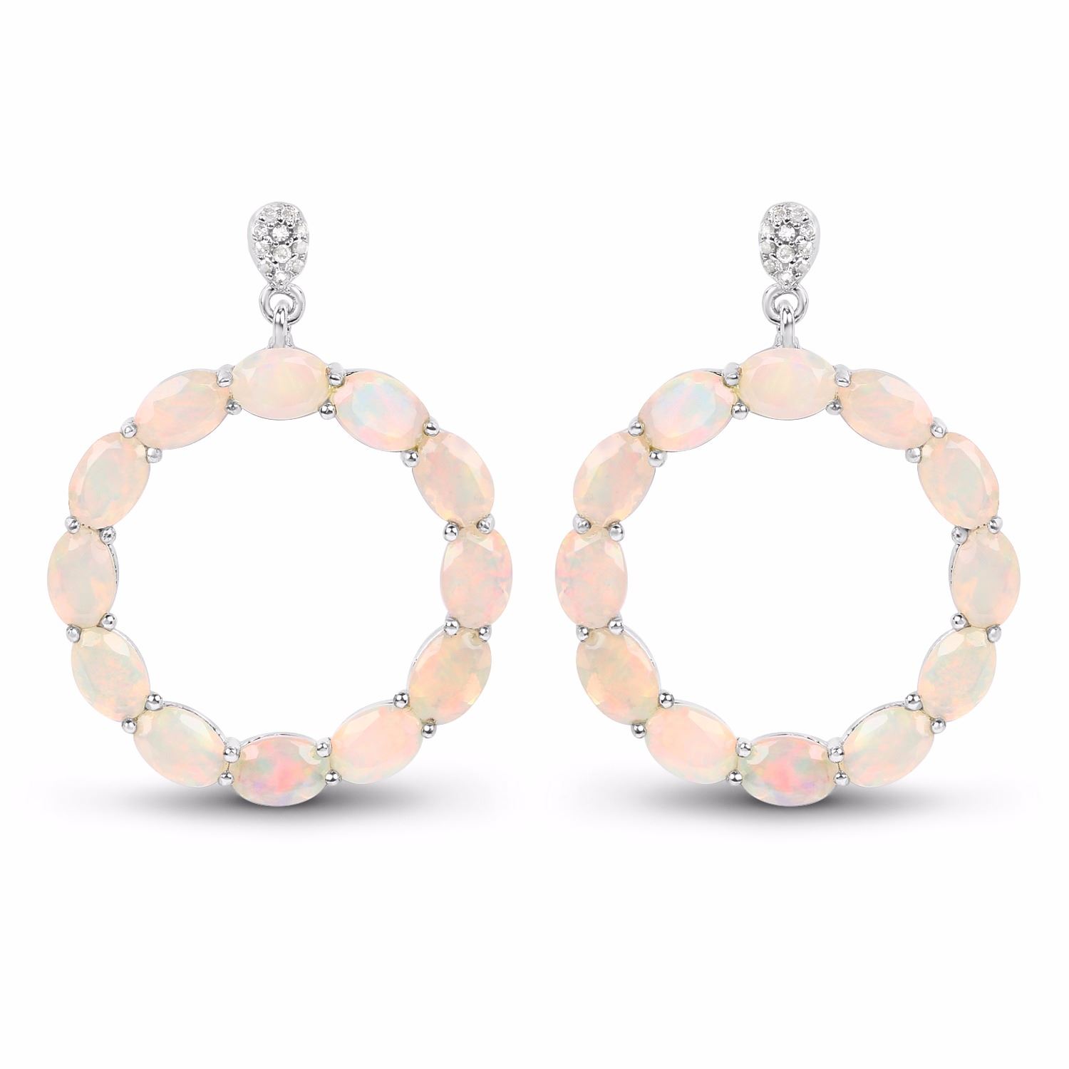 Sterling Silver Ethiopian Opal and Diamond Earrings