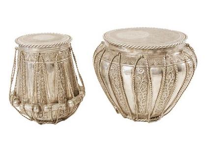 Sterling Silver Exclusive Decorative Musical Drums (Tabla ) Set -with Hand Made Heavily Decorated weighs 17.68 Troy Oz (550 Grams) Approximate "Timeless Treasure" by Shakuntalam Silvercraft.