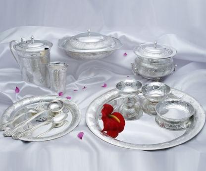 Sterling Silver Exclusive Dinner Set –with Hand Made Heavily Decorated weighs 482.26 Troy Oz (15000 Grams) Approximate "Timeless Treasure" by Shakuntalam Silvercraft.