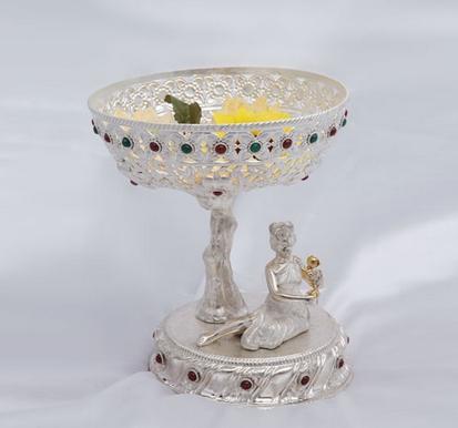 Sterling Silver Exclusive Set of Fruit Basket with (Madonna with Child Figurine )Hand Made Heavily Decorated weighs 80.37 Troy Oz (2500 Grams) Approximate "Timeless Treasure" by Shakuntalam Silvercraft.