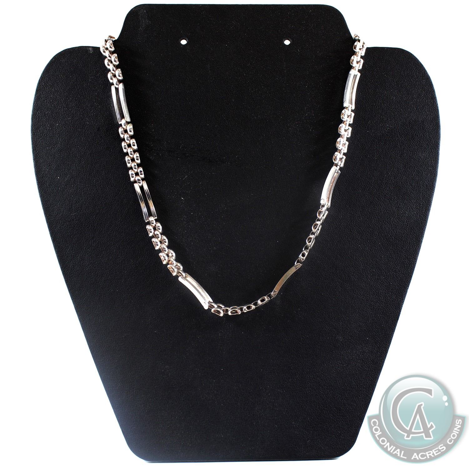 Sterling Silver Fancy-Link Chain. Measures 17" in length with a total weight of 26.5 grams.
