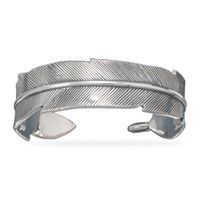 Oxidized sterling silver feather design cuff bracelet. The cuff is 17mm wide.
