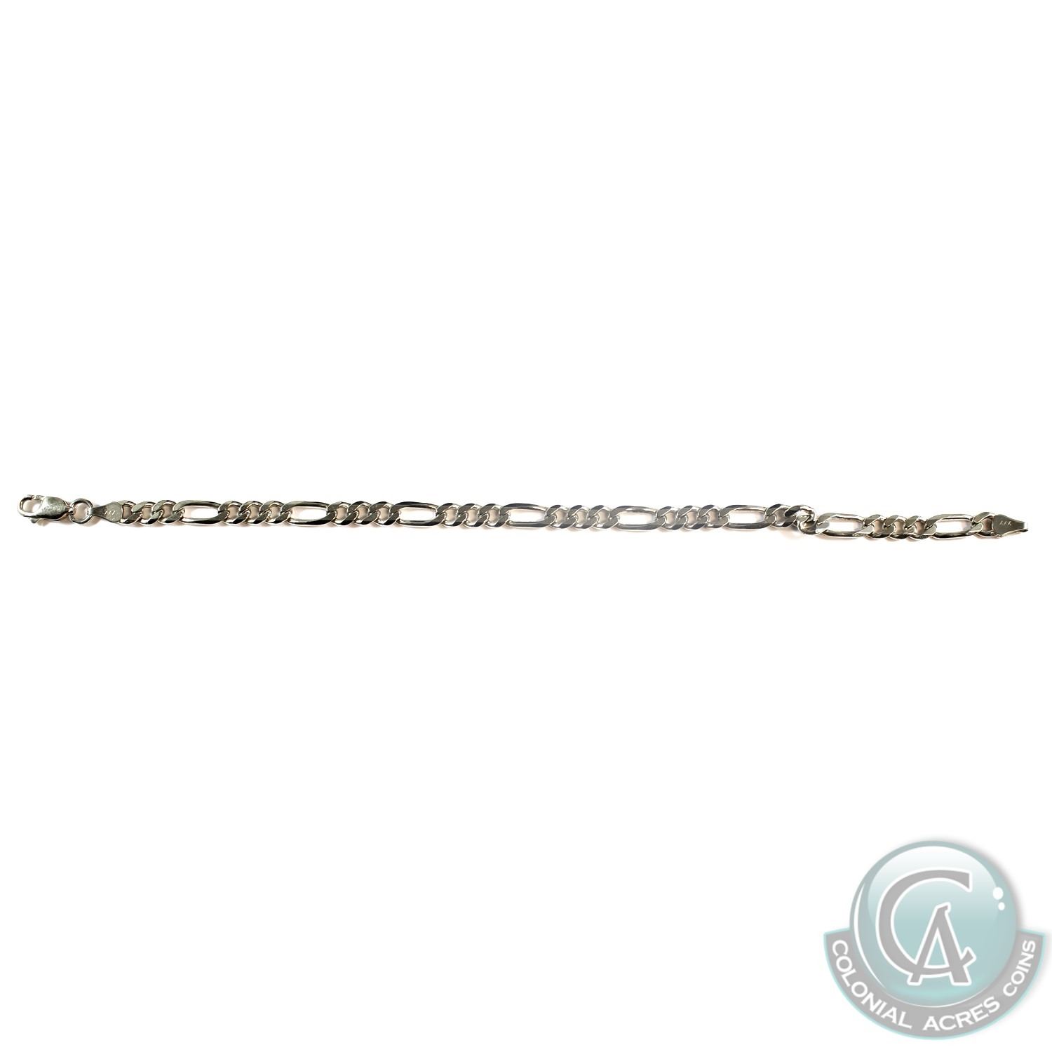 Sterling Silver Figaro-Link Bracelet with Lobster clasp. Measures 9" in length with a total weight of 10.84 grams.