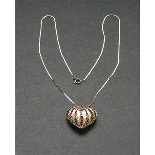 <tr><td>Title:Sterling Silver Filigree Heart Pendant & Chain</td></tr>