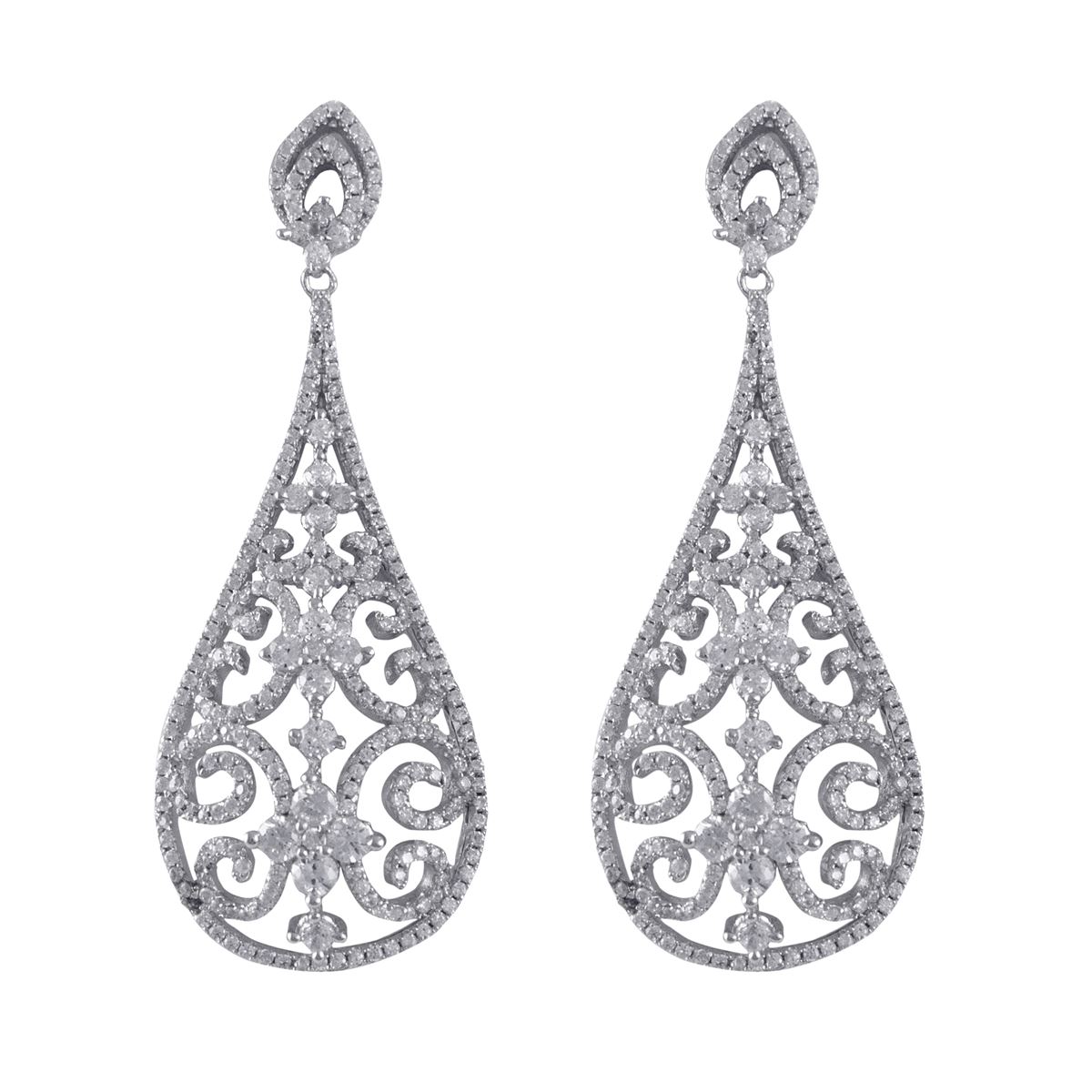 Sterling Silver Filigree Teardrop Post Earrings With AAA Czs. 62Mm Long.