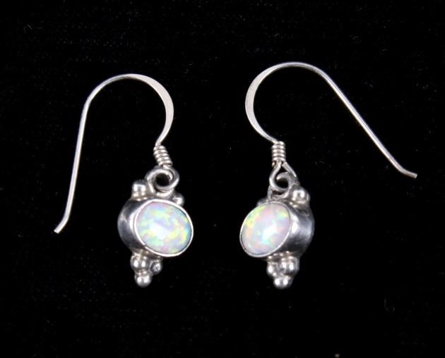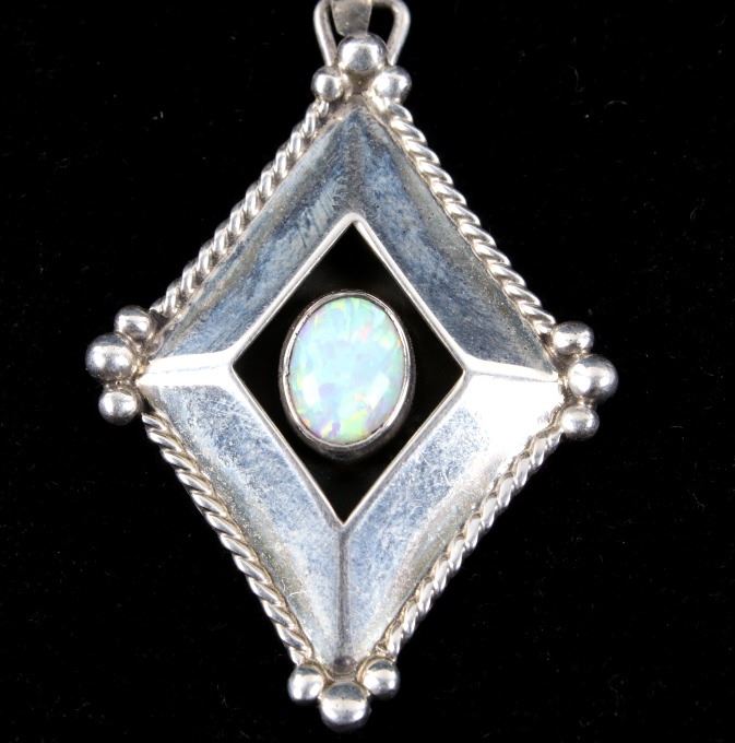 For your bidding pleasure are these sterling silver Fire Opal necklace and earrings. This is a beautiful sterling silver fire opal necklace with a liquid silver chain with a diamond style pendant with a silver twisted rope border and fire opal cabochon centered on the pendant. The opal shows a spectacular flash of color consisting of red, yellow, green, blue, and purple. These earrings show a sterling silver circular earring with a small berry like pattern with the fire opal cabochon centered on the earring. The measurements of the necklace are 24" when unclasped.