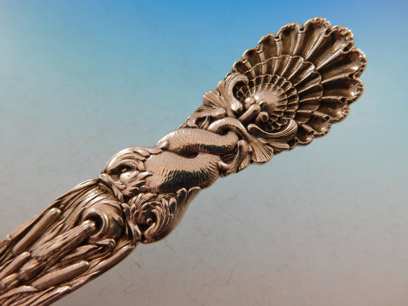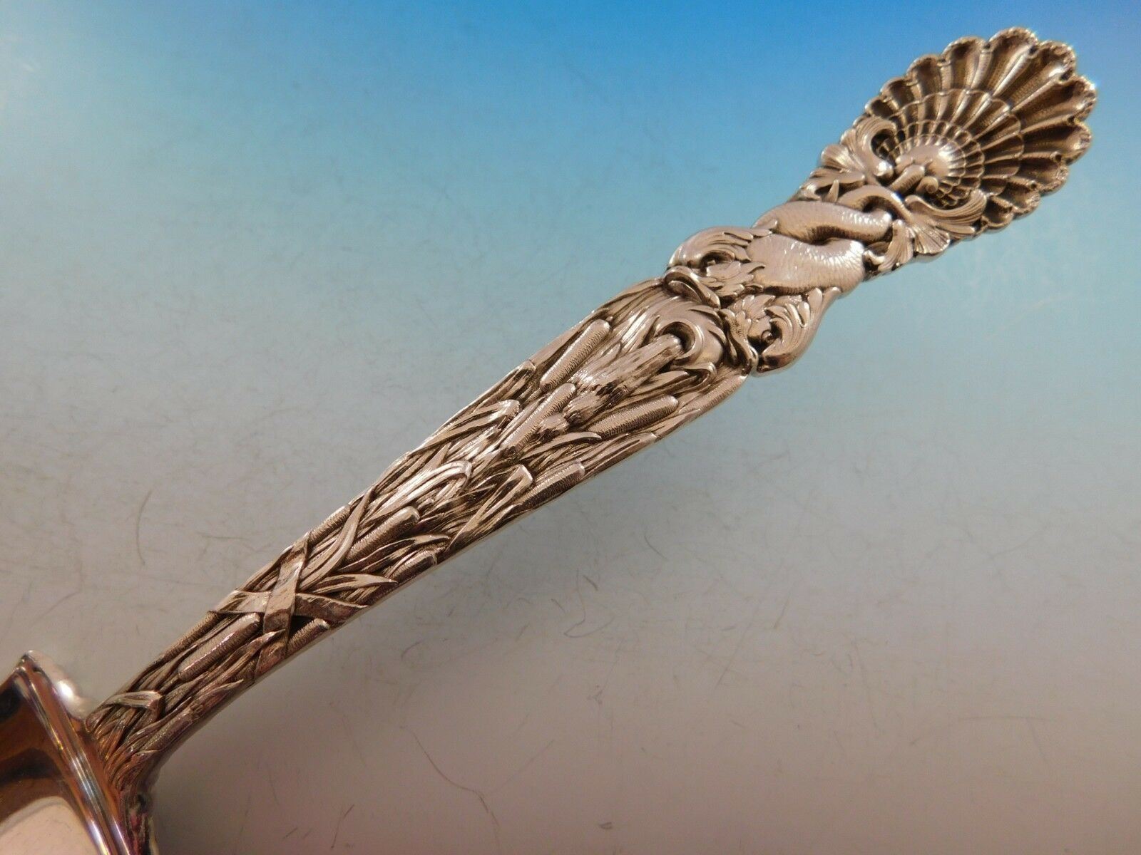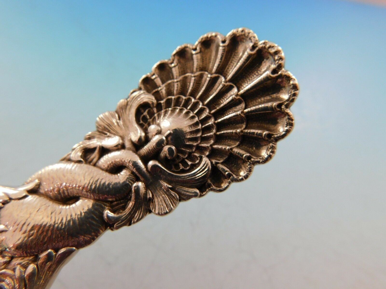 Masterfully crafted sterling silver Fish Server measuring 12 1/2" in the pattern Dolphin by Tiffany and Co. The handle of this piece depicts a very detailed dolphin. It is not monogrammed and is in excellent condition.