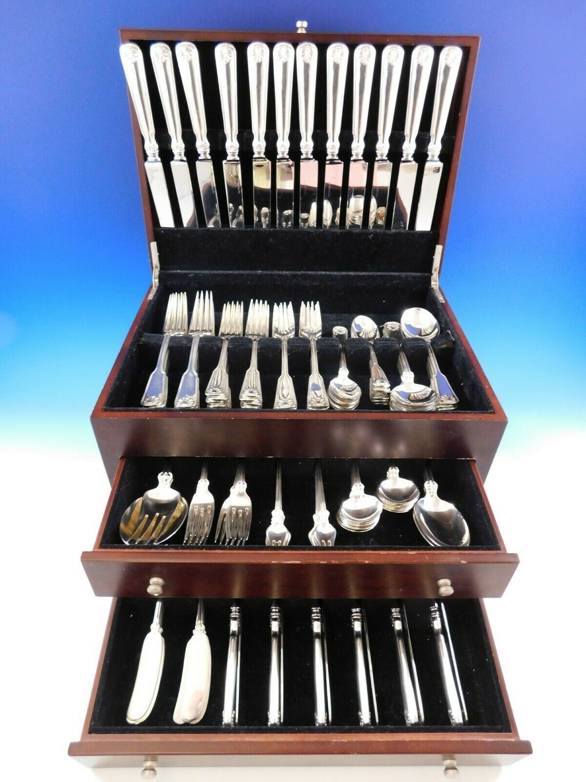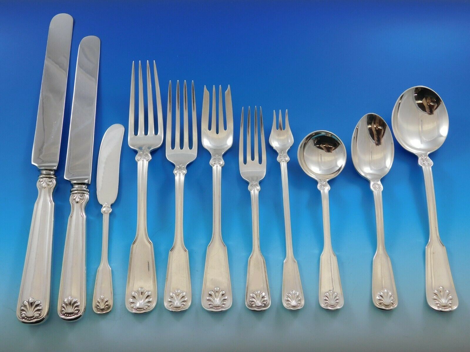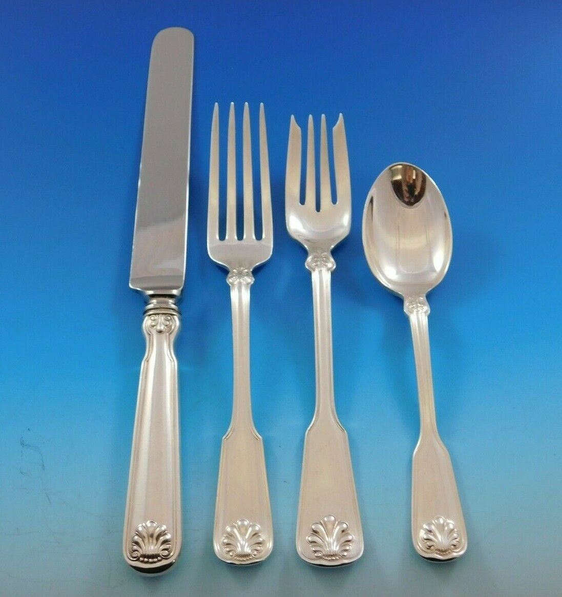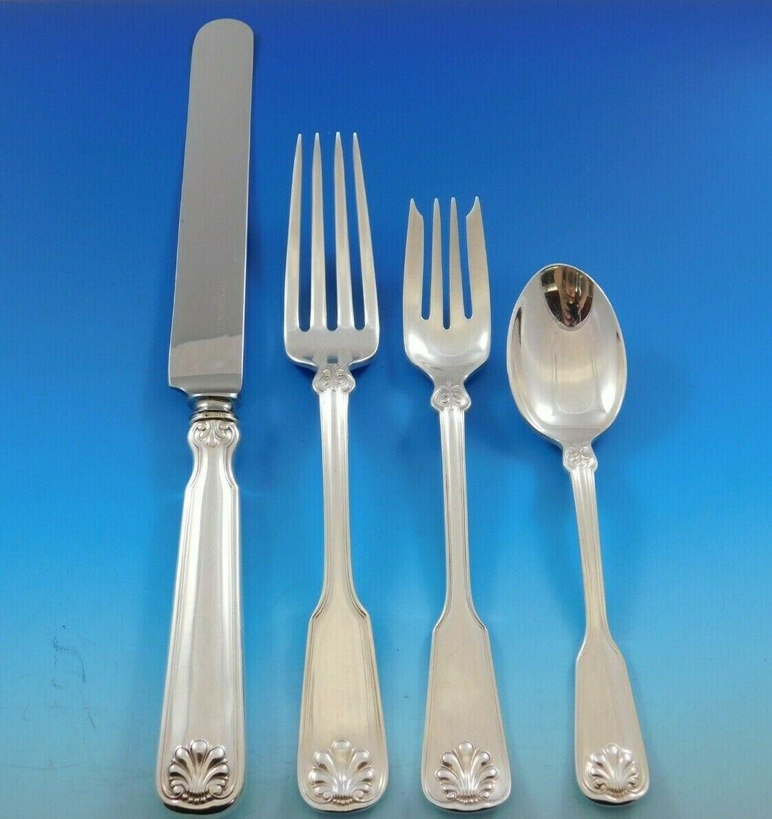 Monumental Dinner and luncheon size Shell & Thread by Tiffany & Co. sterling silver Flatware set, 136 pieces. This set includes: