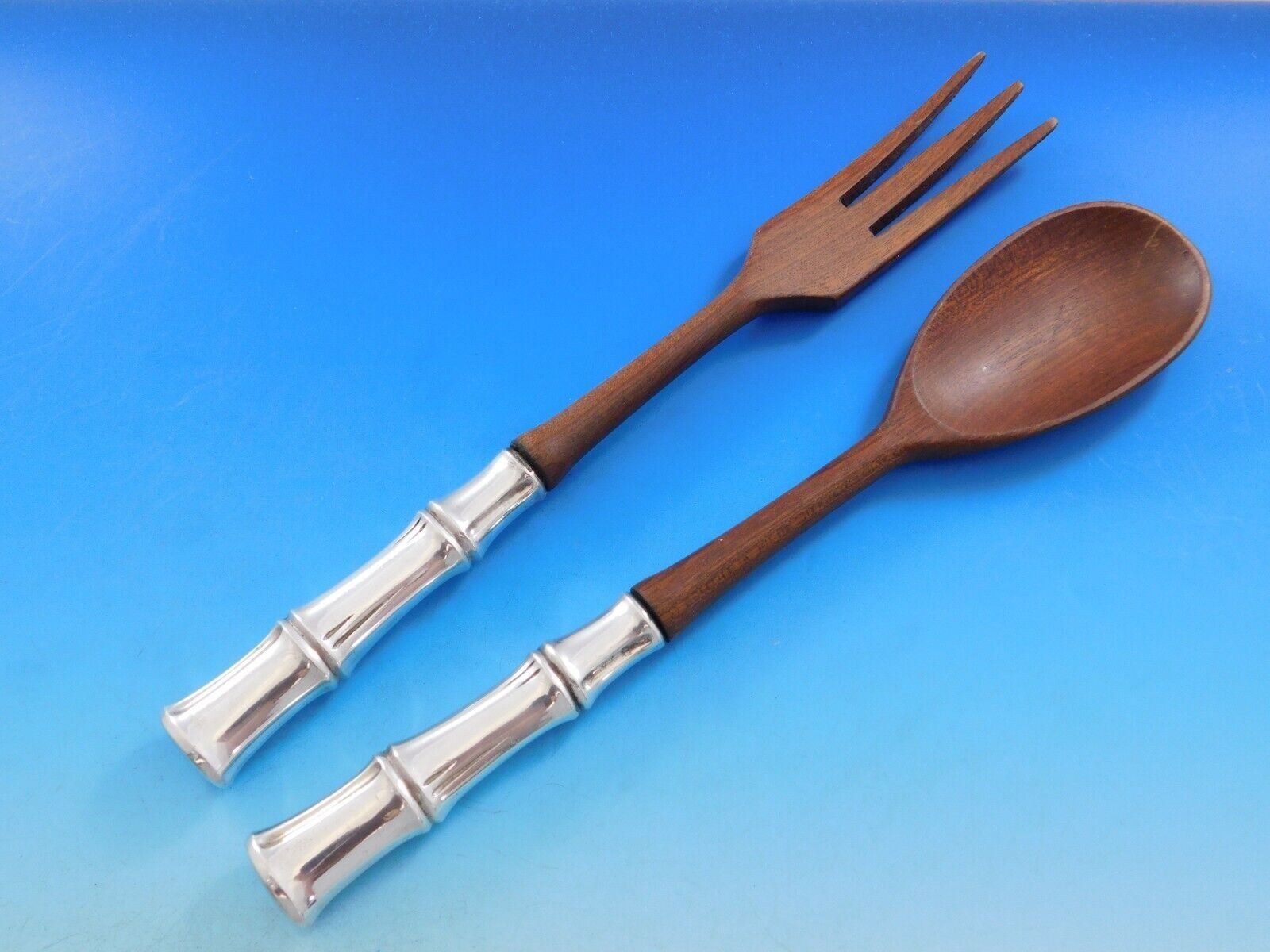 1 Salad Serving Set, with wood, 10 1/4"