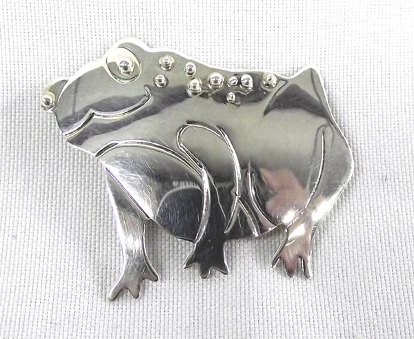 Sterling Silver Frog Pin by noted Silver City, New Mexico silversmith Diane Reed, measures 1.5''H x 3''L.
