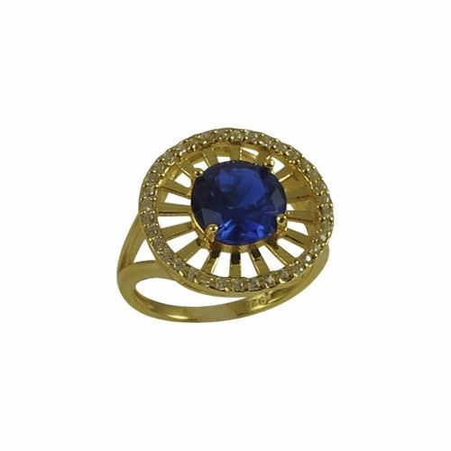 Sterling Silver-GD-Blue(Spinel) Cz Ring