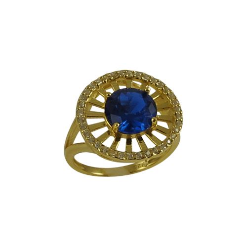 Sterling Silver-GD-Blue(Spinel) Cz Ring