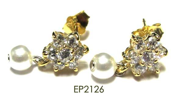 Sterling Silver-GD-CZ Flower Earring