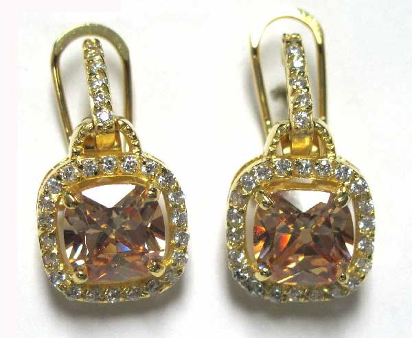 Sterling Silver-GD-CZ Square Earring