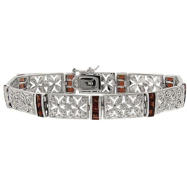 Sterling Silver Garnet and Diamond Accent Filigree Flower Bracelet Item#: 12882218