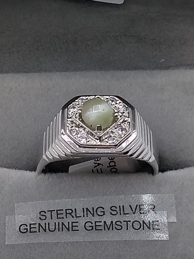 Sterling Silver 5mm genuine Cat's Eye (0.82cts) & Cubic Zirconia Ring, With appraisal of $1295.00...New