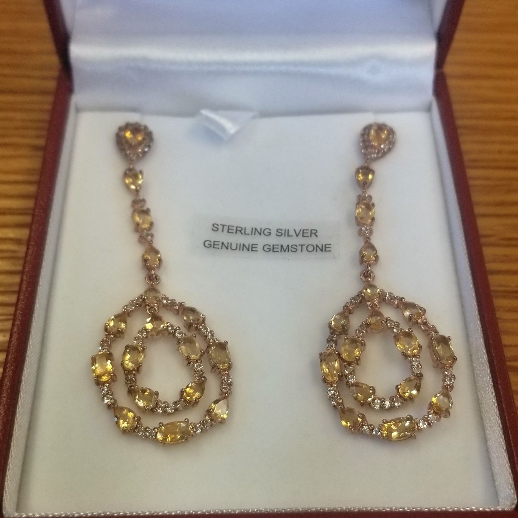 Sterling Silver Genuine Citrine & CZ Drop Earings, 5.9cts