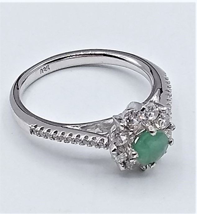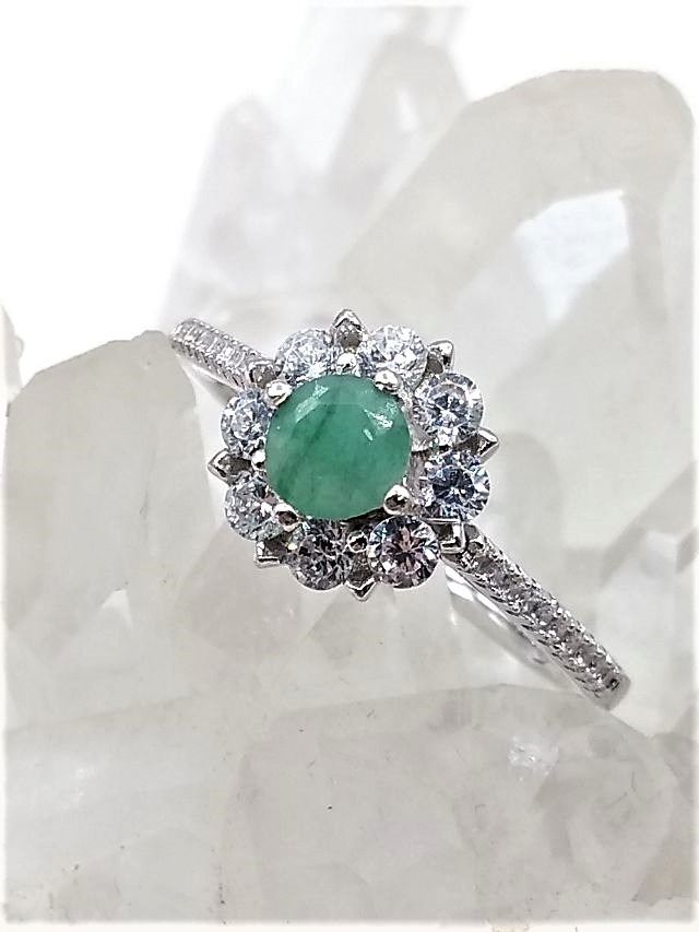 Sterling Silver 4.6mm genuine Emerald (0.36cts) & Cubic Zirconia Cocktail Ring, With appraisal of $700.00, Emerald is the birthstone for May.