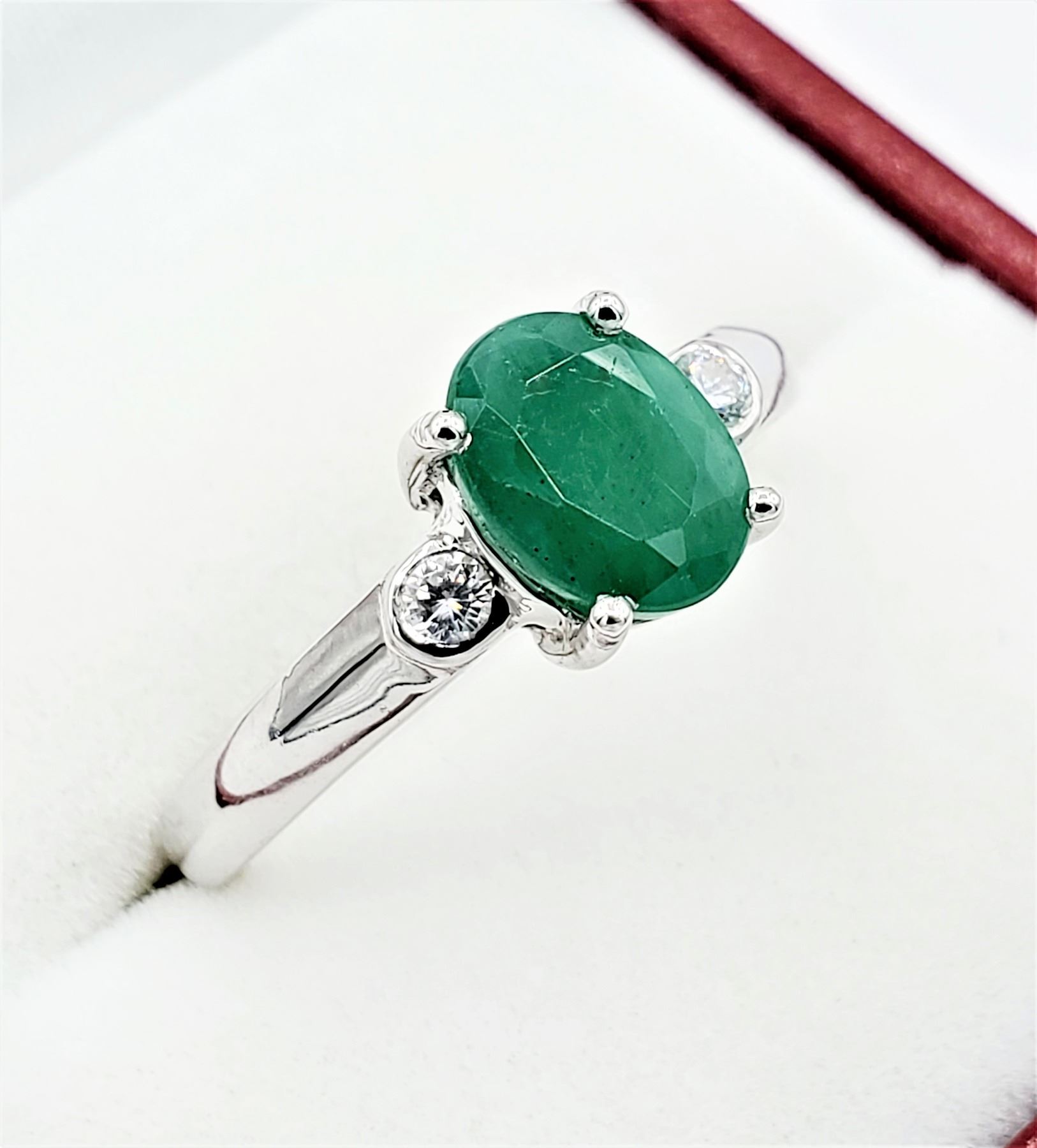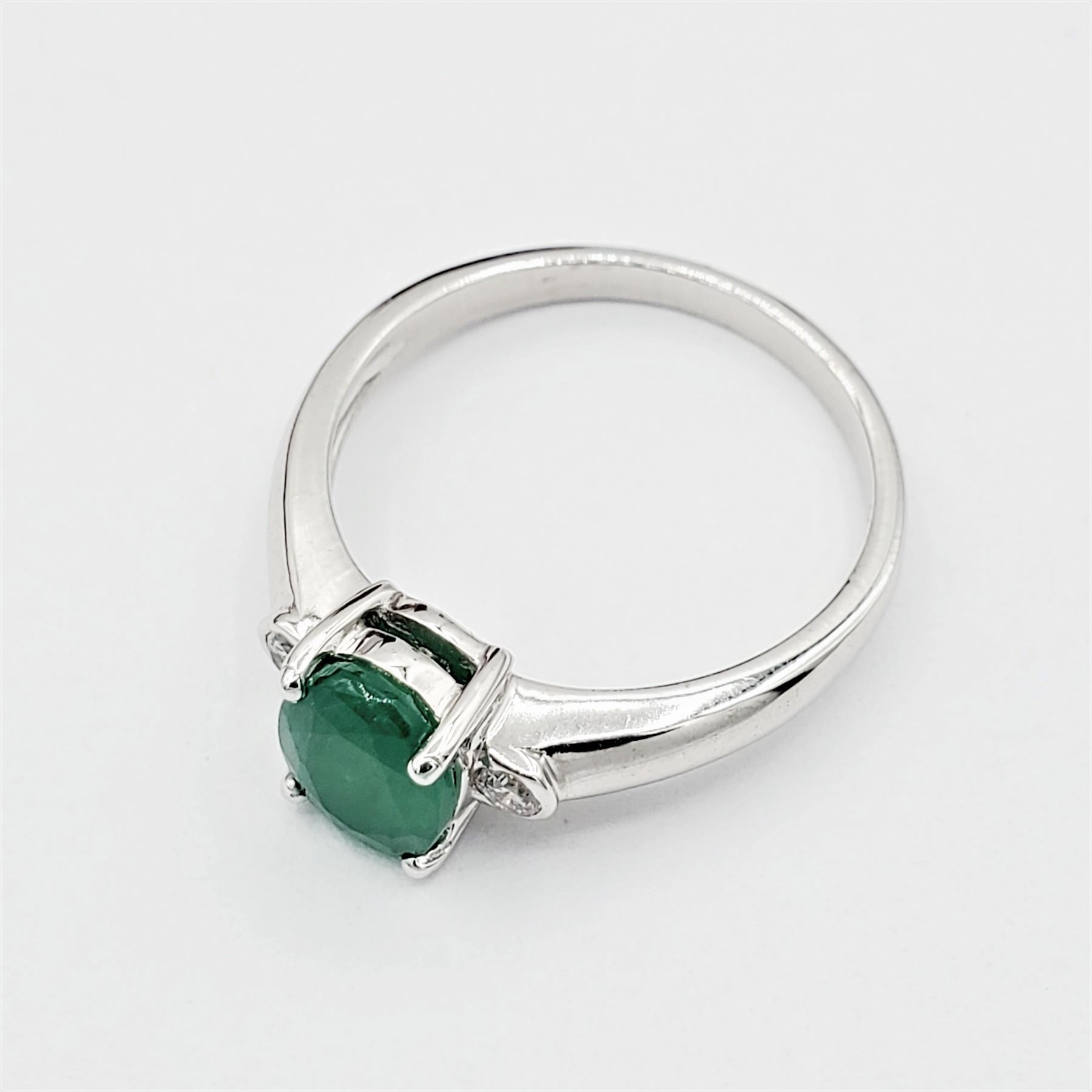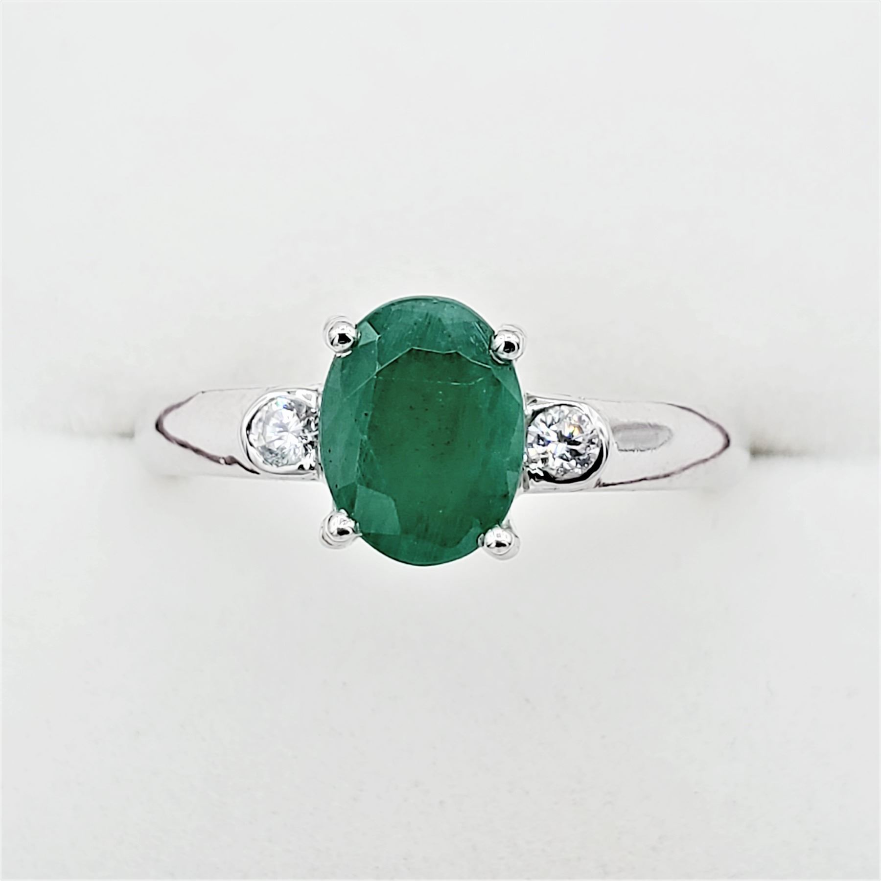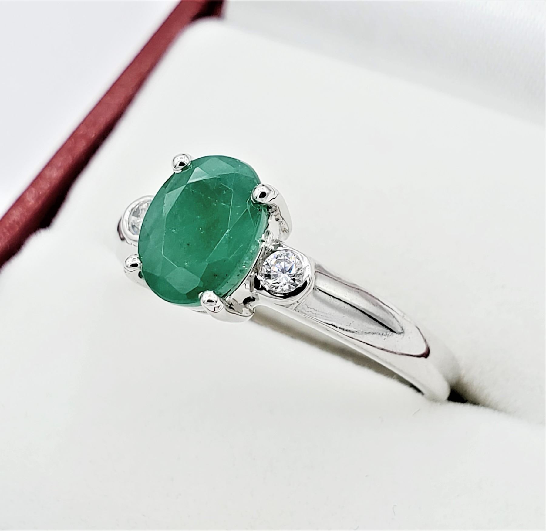 Sterling Silver 8.1mm x 6.12mm genuine Emerald (1.5cts) & Cubic Zirconia Ring, With appraisal of $880.00, Size 7.5, Matching Earrings Available. Emerald is the birthstone for May.