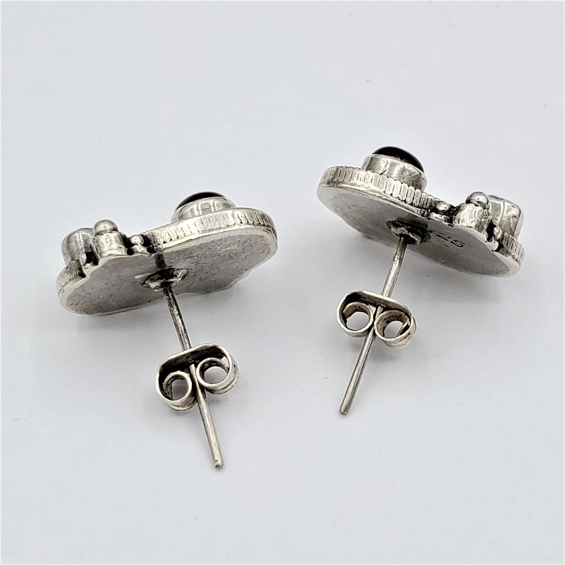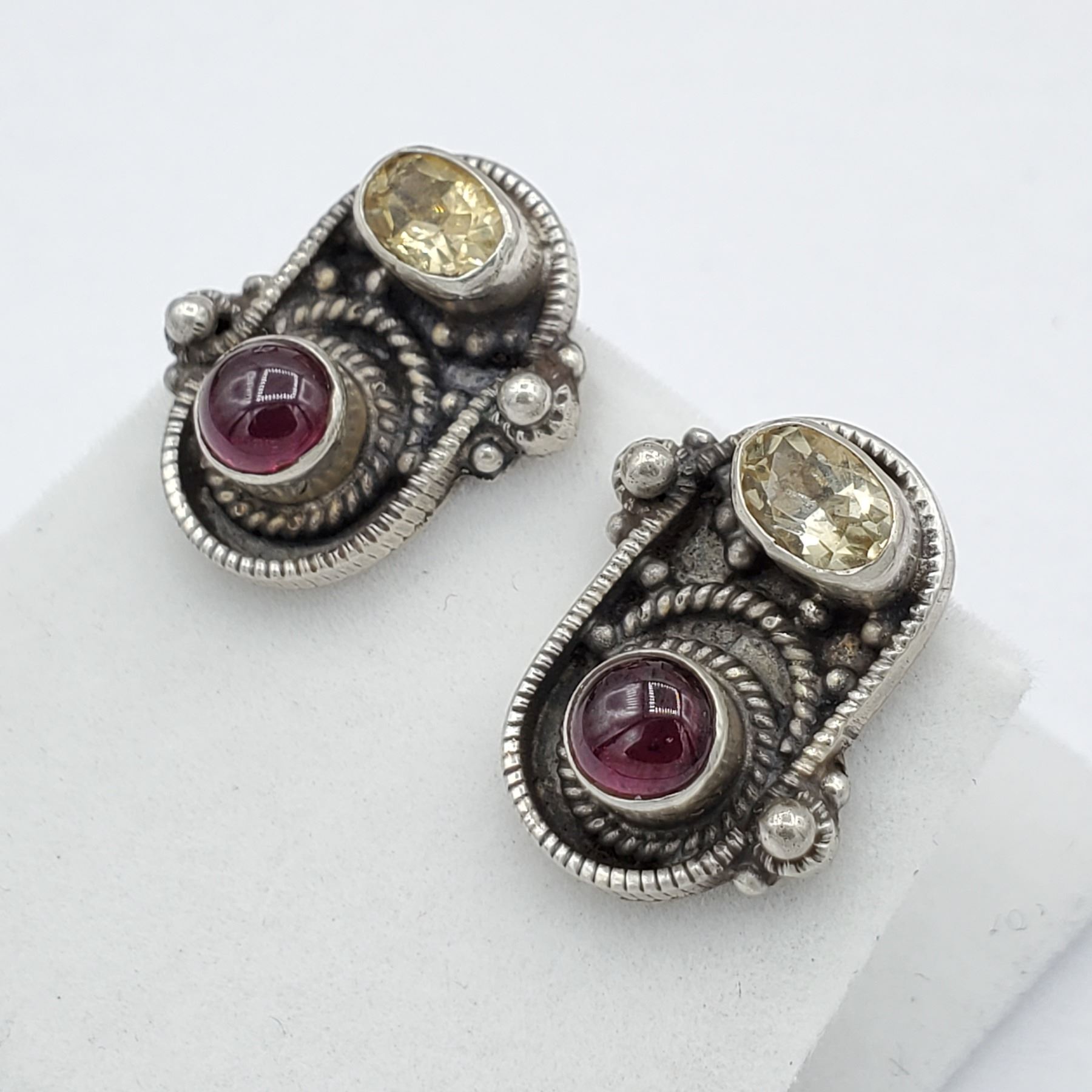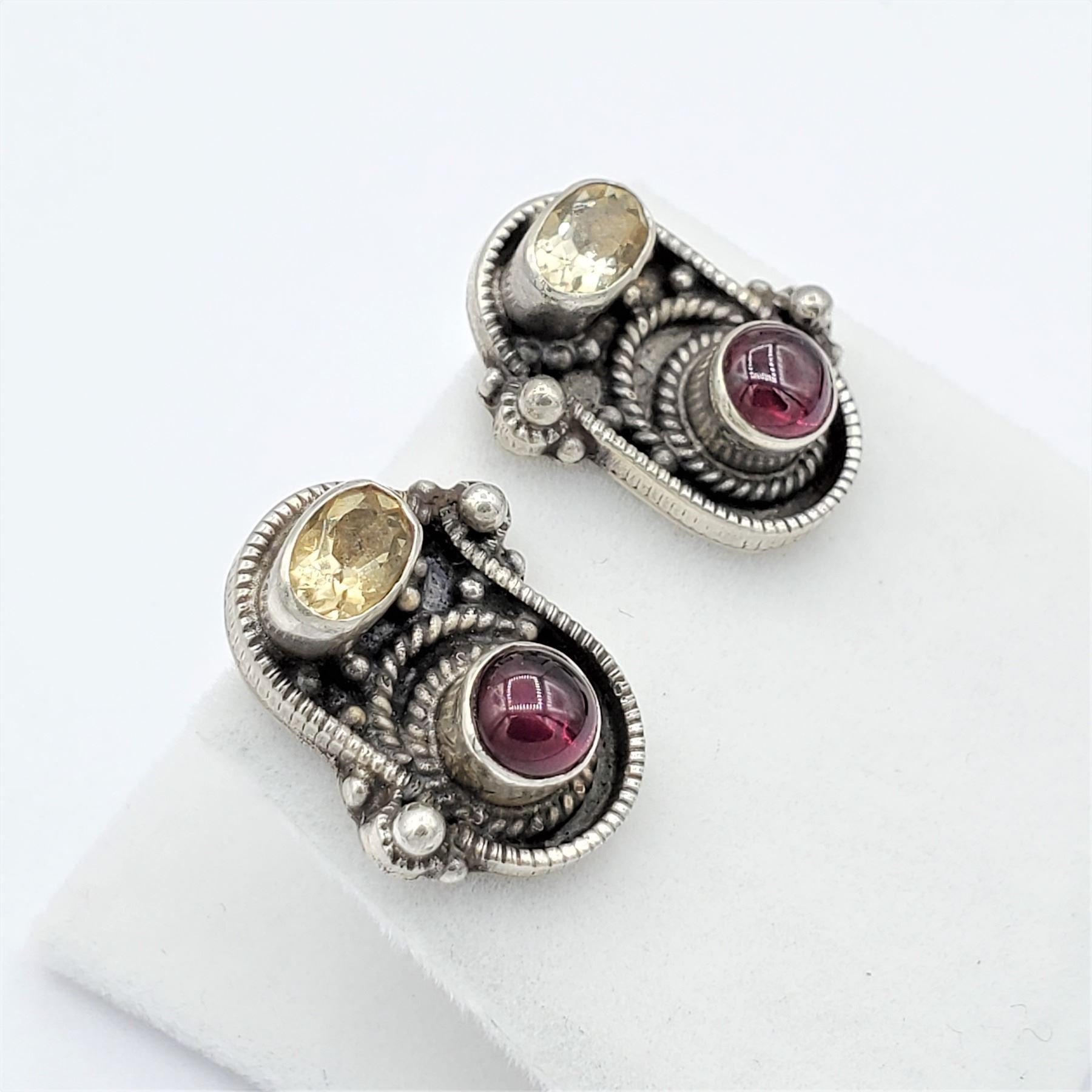 Sterling Silver 5.25mm x 5.25mm genuine Garnet (1.88cts) & Citrine (0.65cts) Earrings, With appraisal of $910.00