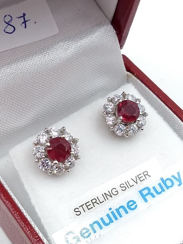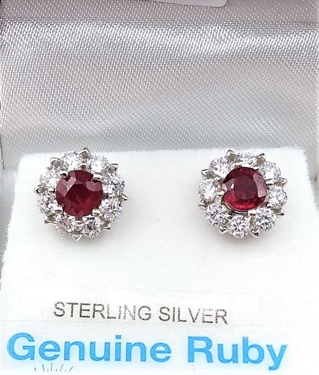 Sterling Silver 4.95mm x 4.95mm genuine Ruby (1.26cts) & CZ Earrings, With appraisal of $735.00...New