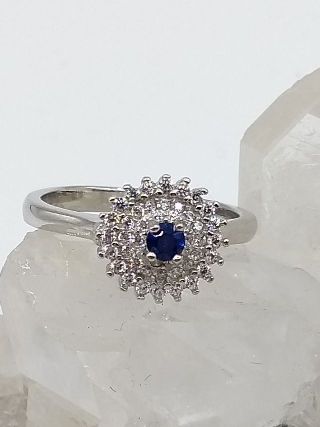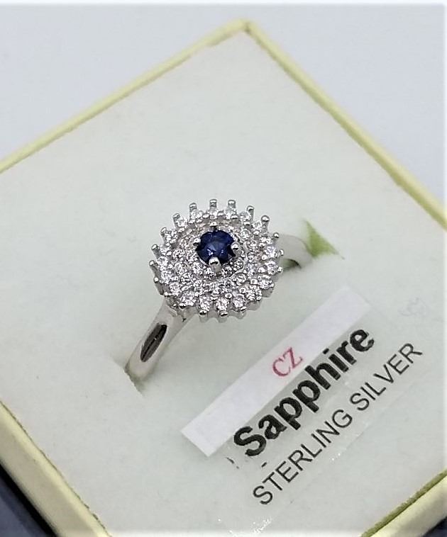 Sterling Silver 2.75mm genuine Sapphire (0.11cts) & Cubic Zirconia Cocktail Ring, With Appraisal of $640.00...New