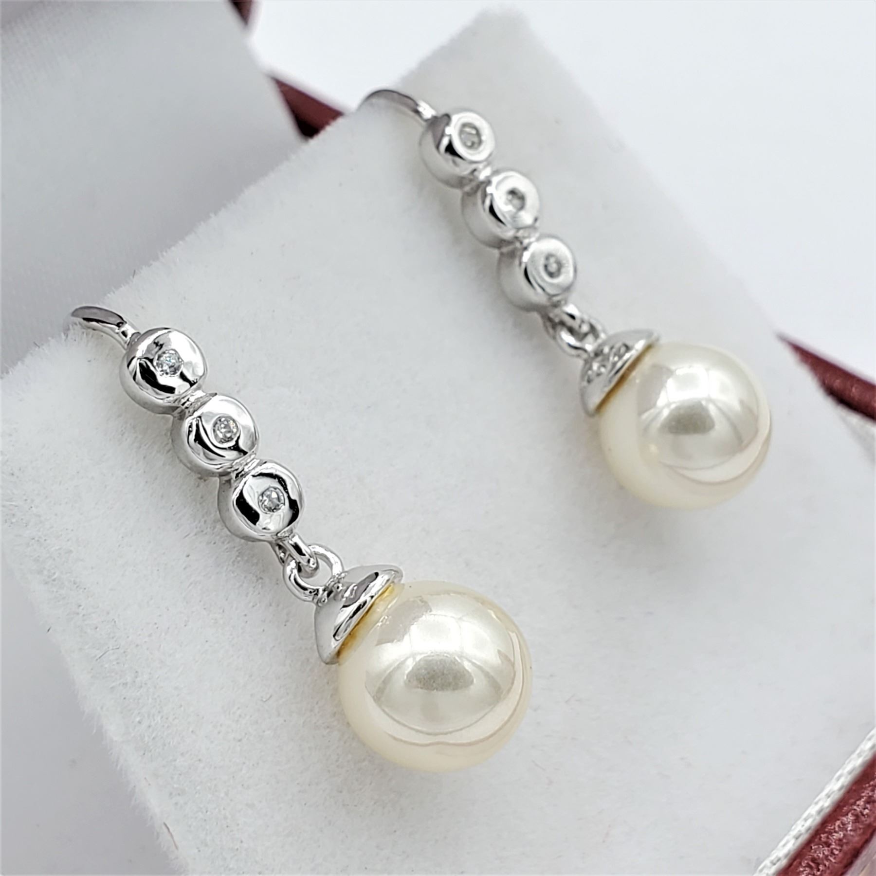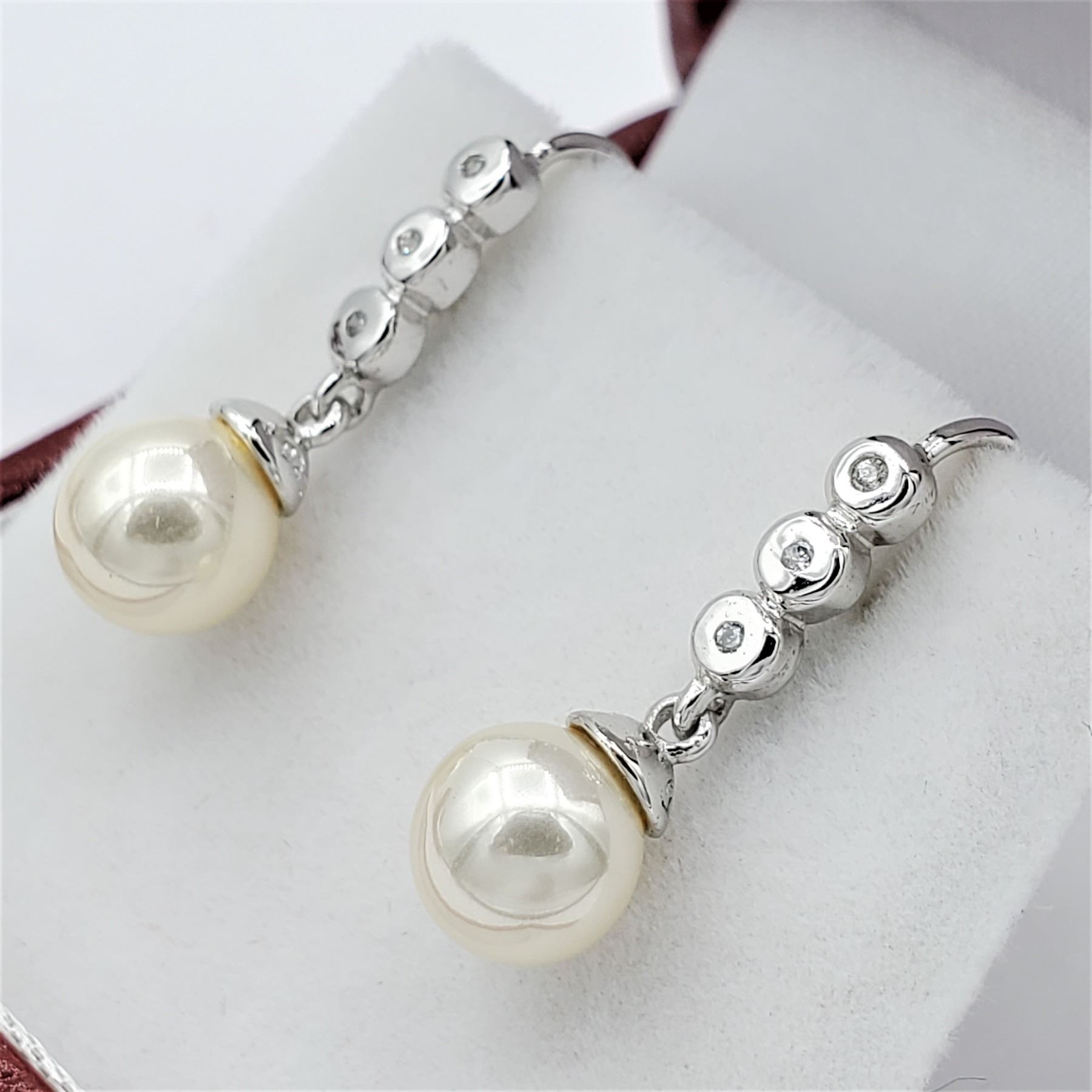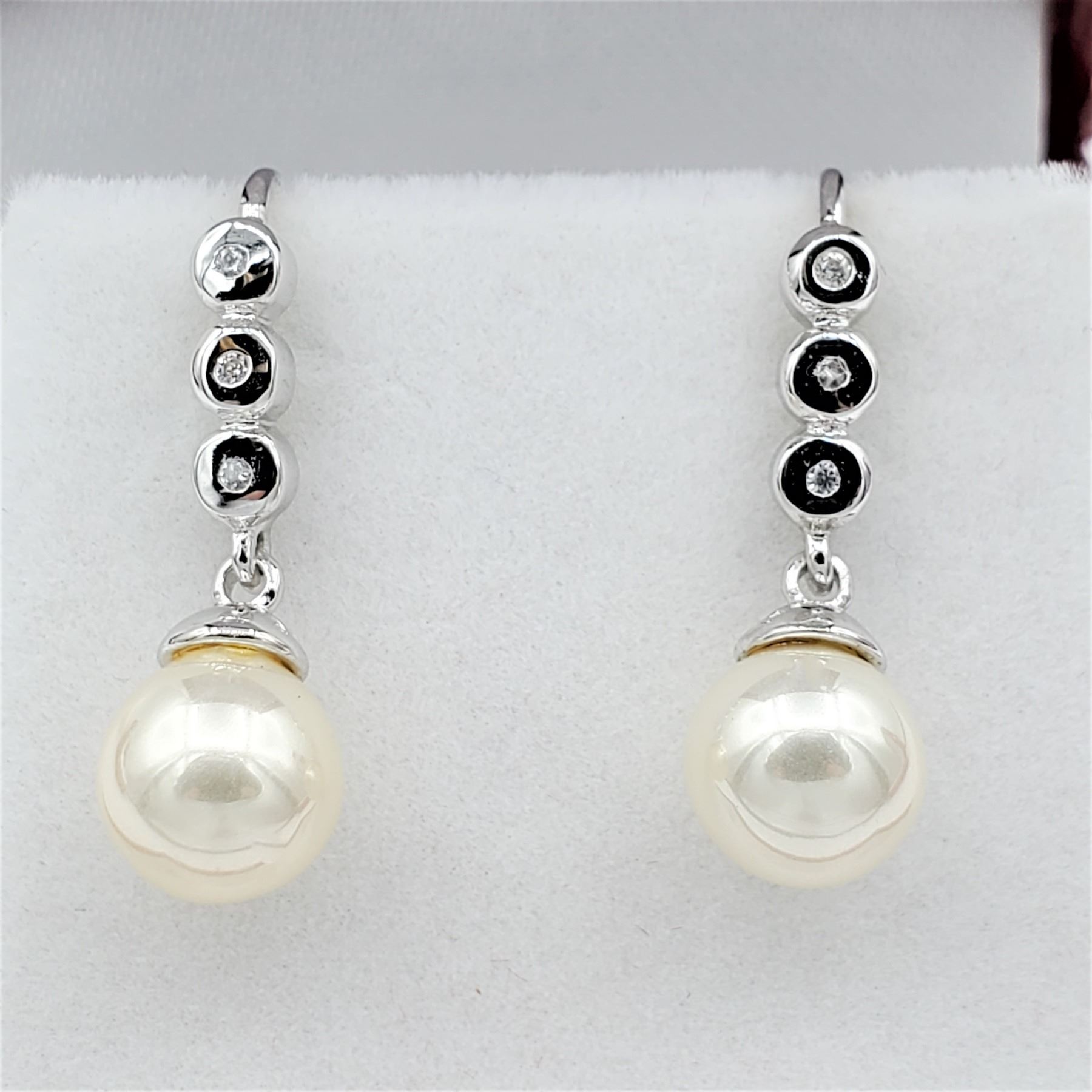 Sterling Silver genuine Shell Pearl & Cubic Zirconia Earrings, retail $150.00, Pearl is the birthstone for June.