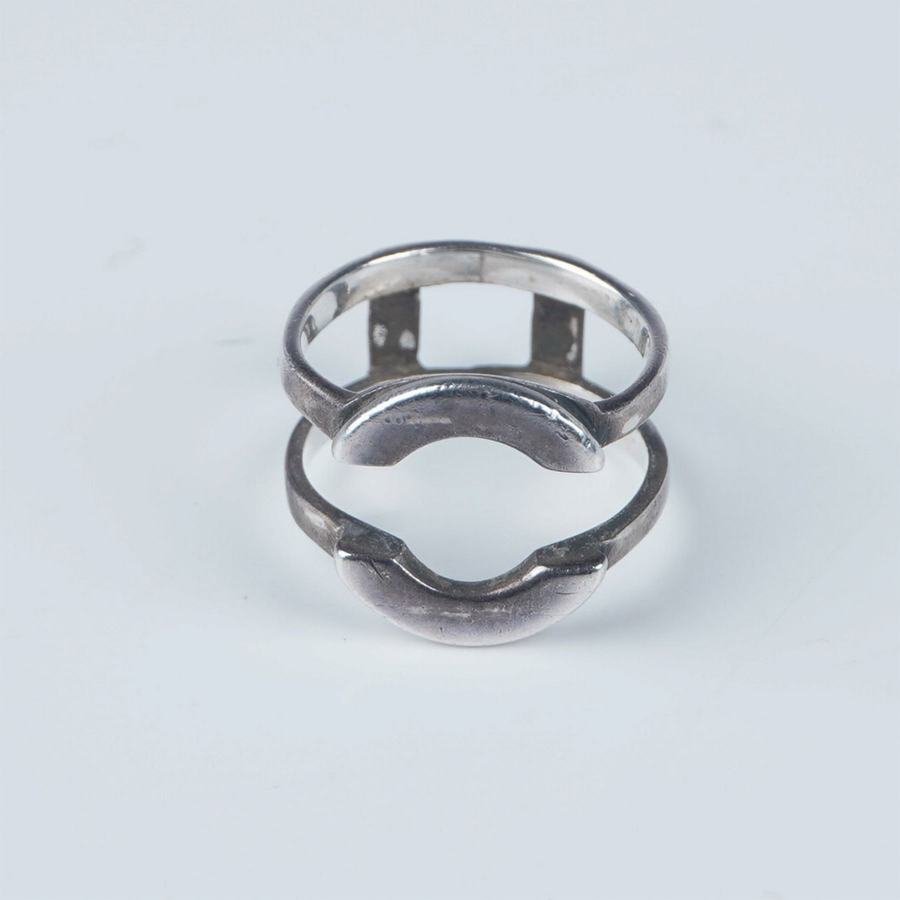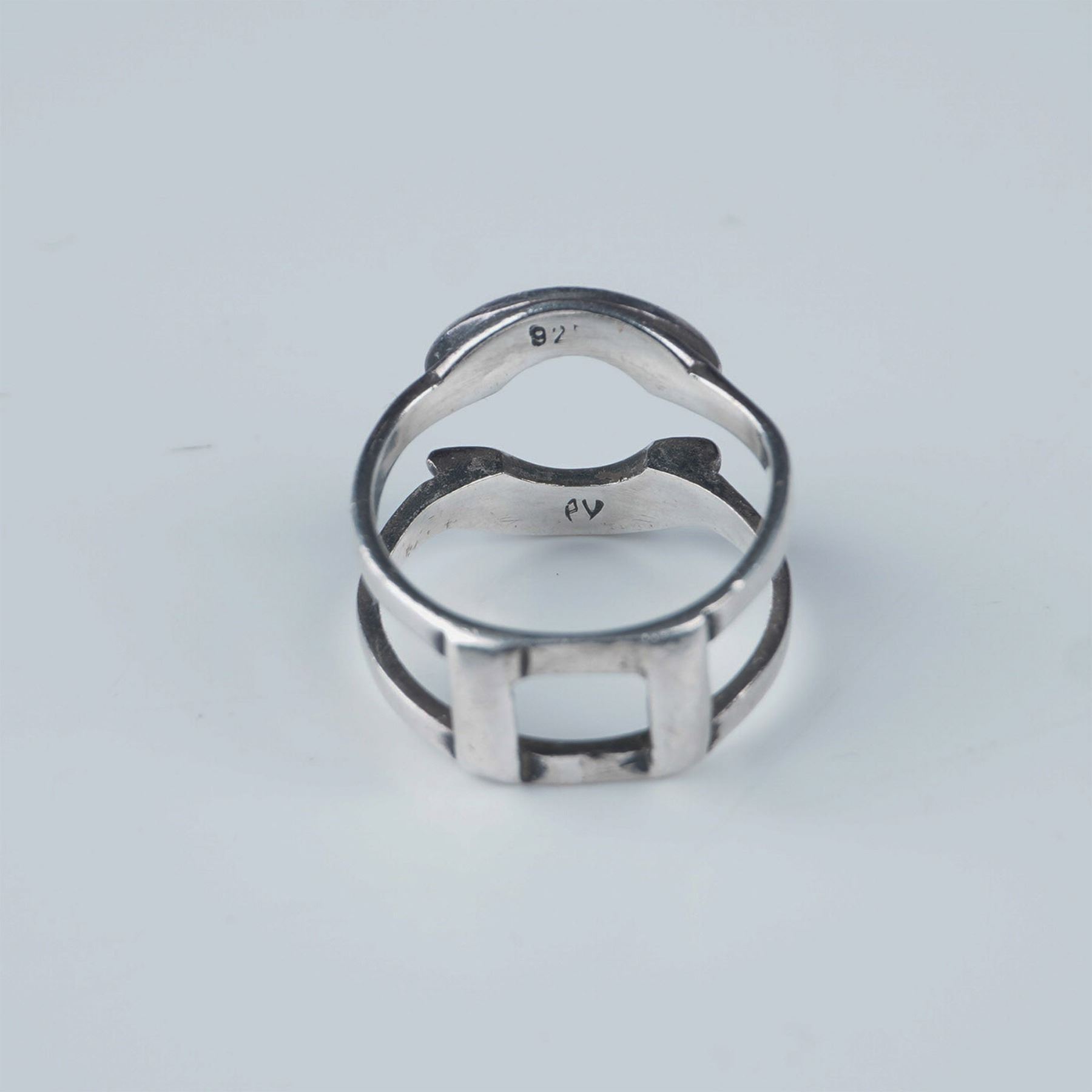 This petite sterling silver ring features a modern geometric design and is marked 925, indicating its silver composition. With an approximate size of 4, this ring is perfect for small fingers or as a pinky ring. A sleek and minimalist accessory ideal for casual or formal wear.