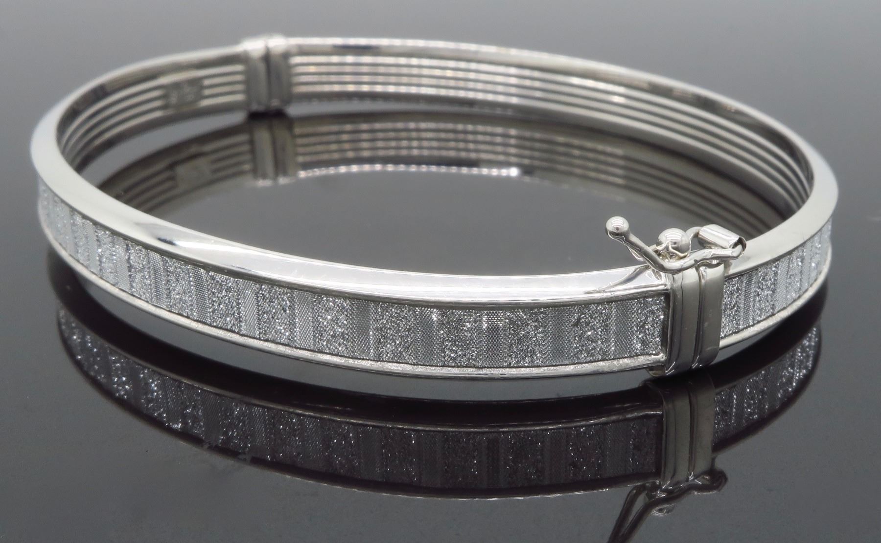 One Sterling Silver Glitter Bangle Bracelet. Total weight of this bracelet is 7 grams. Total length is 7 inches.