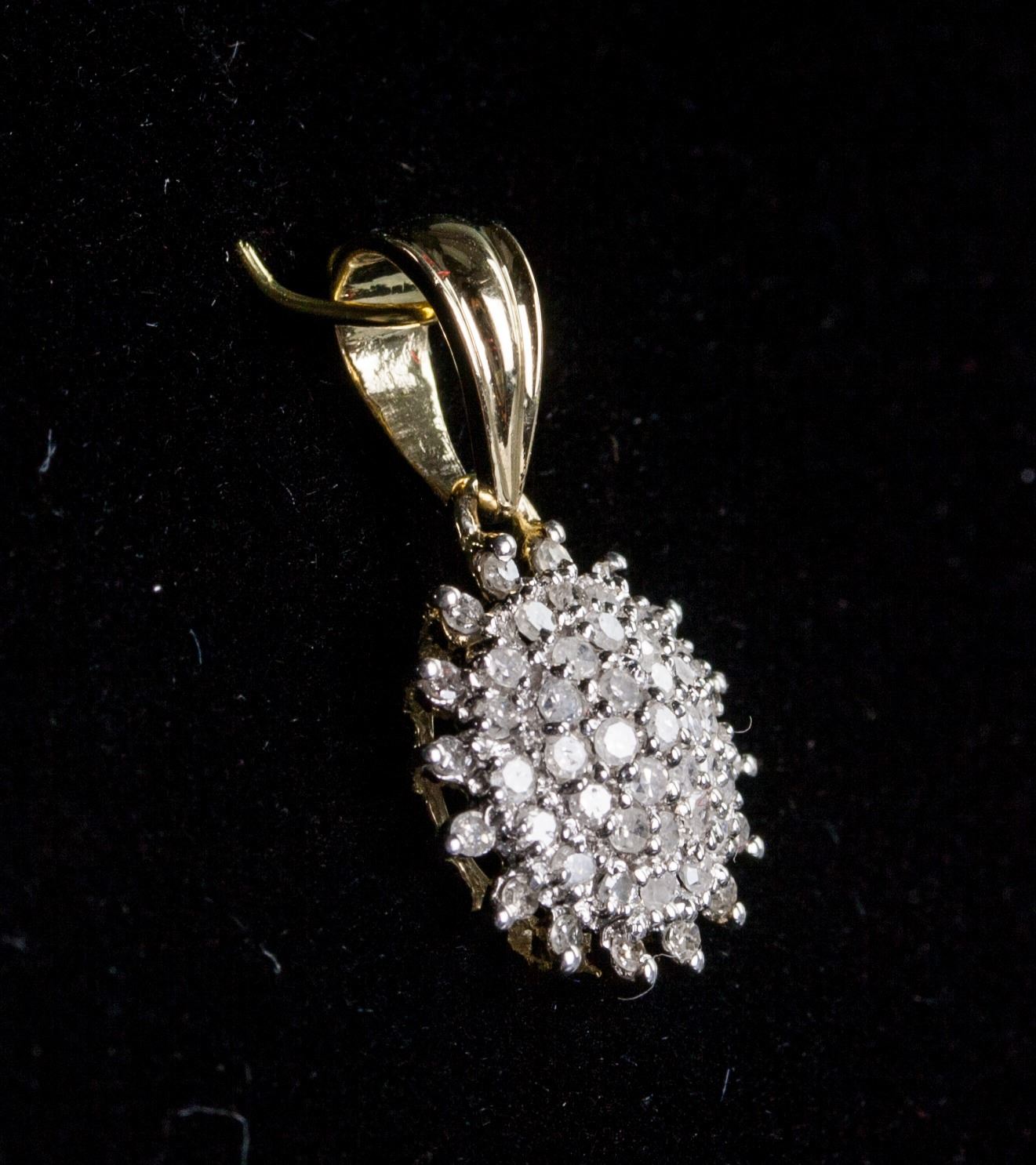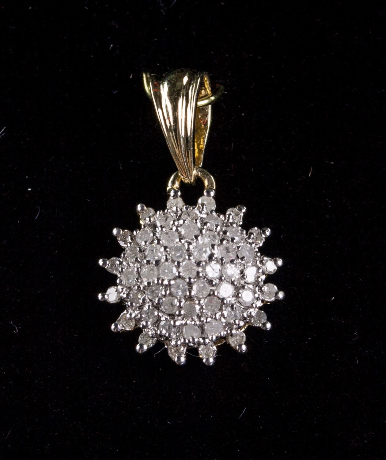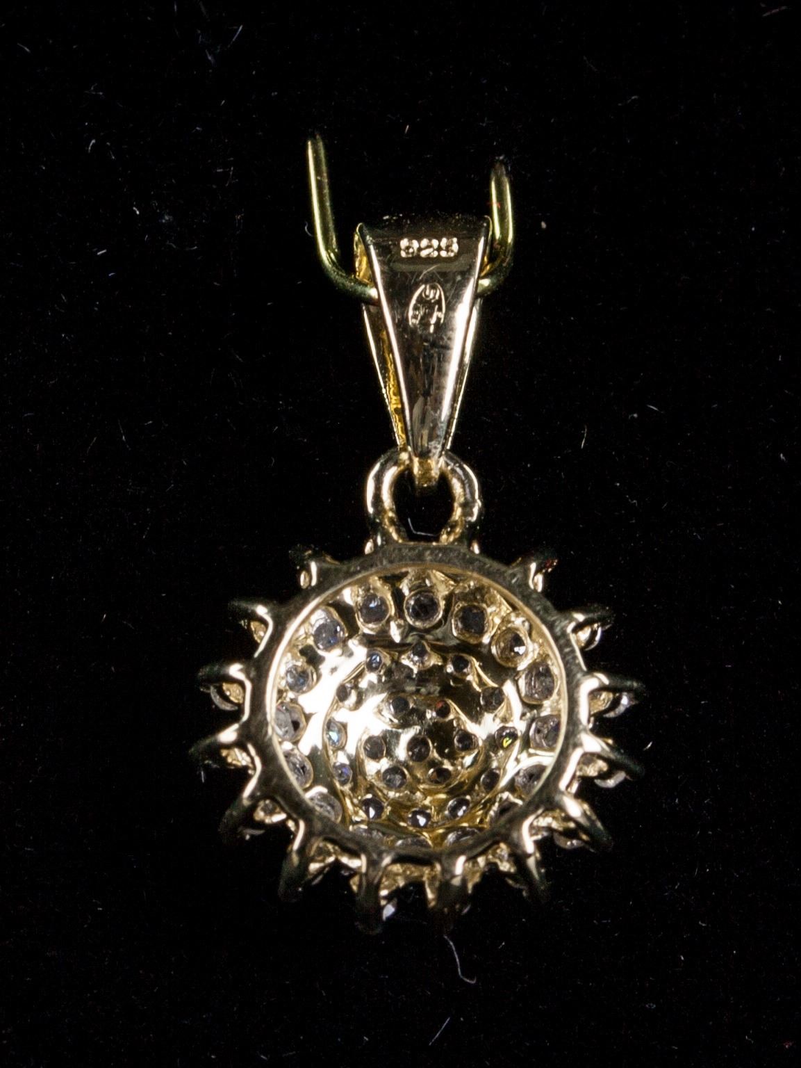 Sterling silver and gold plated pendant; set with diamonds; retail value $600; H: 2 cm, W: 1.3 cm, 1.85 grams