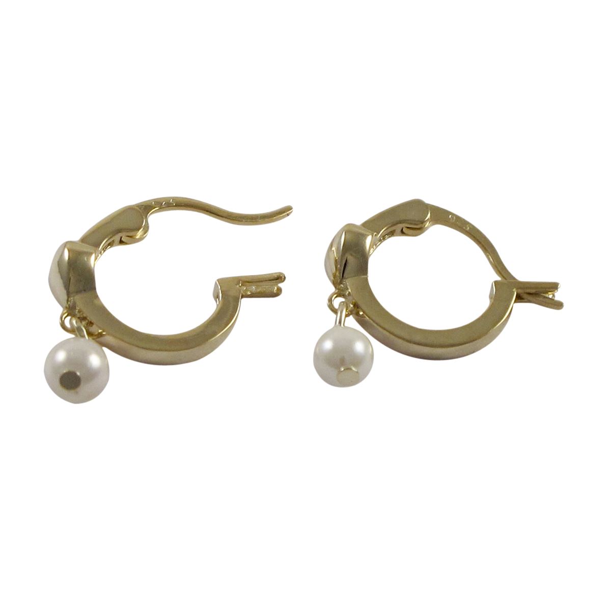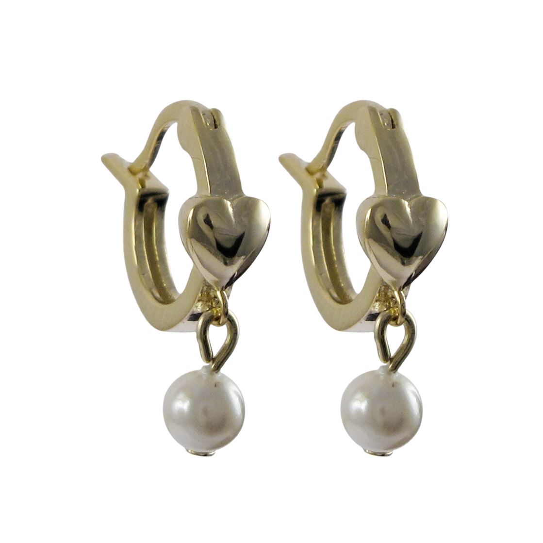 Sterling Silver Gold Plated Heart Earrings Hoop With Pearl.