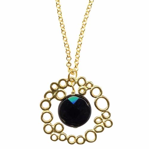 Sterling Silver Gold Plated Necklace With Amethyst Flat Faceted Coin Stone In Center. Also Available In Black Onyx Coin.
